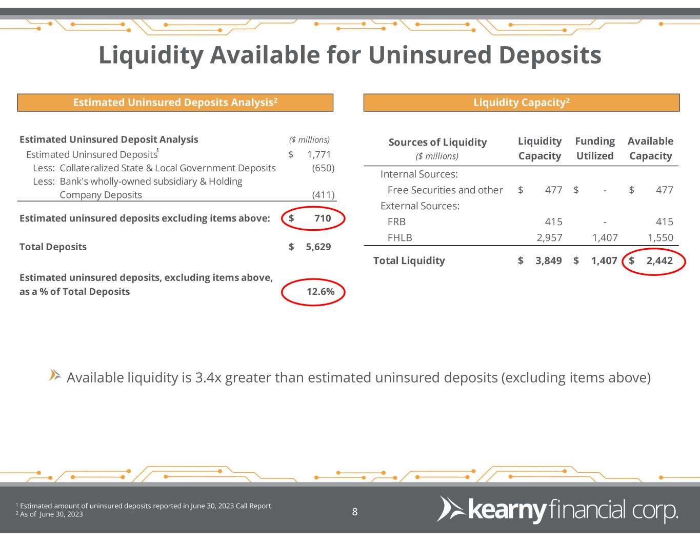 Deposits 1 For the quarter ended June 30, 2023 2 For the quarter ended June 30, 2023; excludes Wholesale CDs Source: S&P Global Market Intelligence & Company Filings 7 Deposit Composition1 Deposit Trend Deposit Segmentation2 $1,116 $1,263 $1,355 $1,327 $1,377 $773 $797 $747 $761 $640 $1,053 $983 $902 $811 $749 $2,266 $2,382 $2,316 $2,286 $2,253 $654 $683 $651 $618 $610 $5,862 $6,108 $5,971 $5,803 $5,629 4Q22 1Q23 2Q23 3Q23 4Q23 Retail CDs Wholesale CDs Savings Interest Bearing DDA Non-interest Bearing DDA Consumer 61.0%Commercial 20.5% Government 18.5% Product # of Accounts Balance ($ millions) Average Balance per Account Checking 53,747 $ 2,863 $ 53,270 Savings 34,779 749 21,528 CD 29,375 1,377 46,876 Total Retail Deposits 117,901 $ 4,989 $ 42,313 Non-Maturity Account Deposit Mix QTD Cost of Deposits 2.04% Retail CDs 24.5% Wholesale CDs 11.4% Savings 13.3% Interest Bearing DDA 40.0% Non-interest Bearing DDA 10.8%