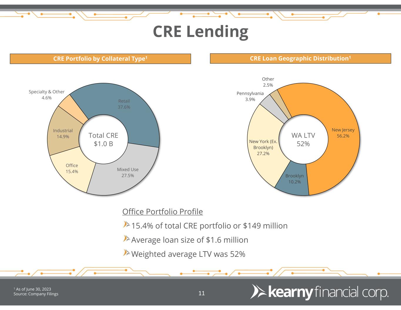 Portfolio Lending Loan Composition1 Geographic Distribution2Loan Trend The weighted average loan-to-value ratio1 for our real estate secured loans was 61% 1 For the quarter ended June 30, 2023. 2 As of June 30, 2023. Source: S&P Global Market Intelligence & Company Filings 10 $1,688 $1,710 $1,765 $1,758 $1,744 $2,409 $2,570 $2,852 $2,836 $2,762 $1,020 $1,041 $1,017 $1,003 $969 $5,437 $5,676 $6,001 $5,976 $5,850 4Q22 1Q23 2Q23 3Q23 4Q23 1-4 Family Multifamily CRE C&D Other ($ millions) 1-4 Family 29.1% Home Equity 0.7% Multifamily 47.2% CRE 16.6% Construction 3.9% Commercial 2.5% QTD Yield on Loans 4.18% New York (Ex. Brooklyn) 17.0% Brooklyn 18.3% New Jersey 54.5% Pennsylvania 5.8% Other 4.4%