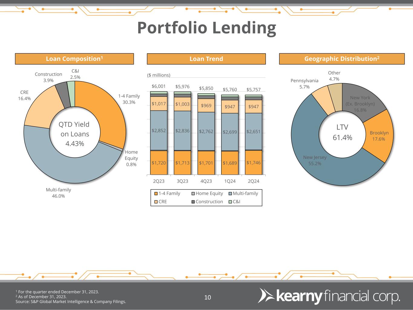 Kearny Financial Corp. NASDAQ: KRNY Market Cap: $531.7 million1 Founded in 1884 Top 10 New Jersey-based financial institution by assets 43 full-service branches2 in 12 counties throughout New Jersey and New York City Active acquirer, having completed 7 whole-bank acquisitions since 1999 1 As of January 23, 2024. 2 As of December 31, 2023. Source: S&P Global Market Intelligence & Company Filings. 3