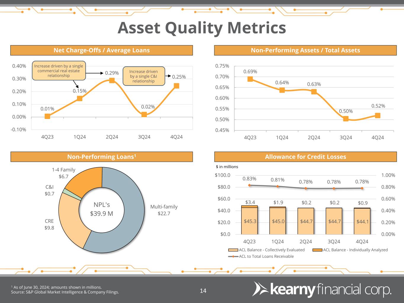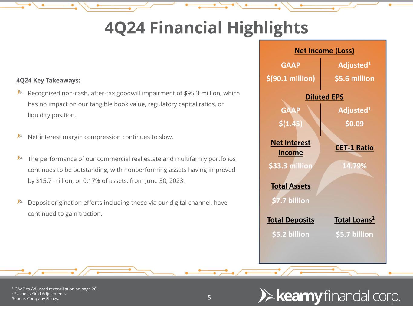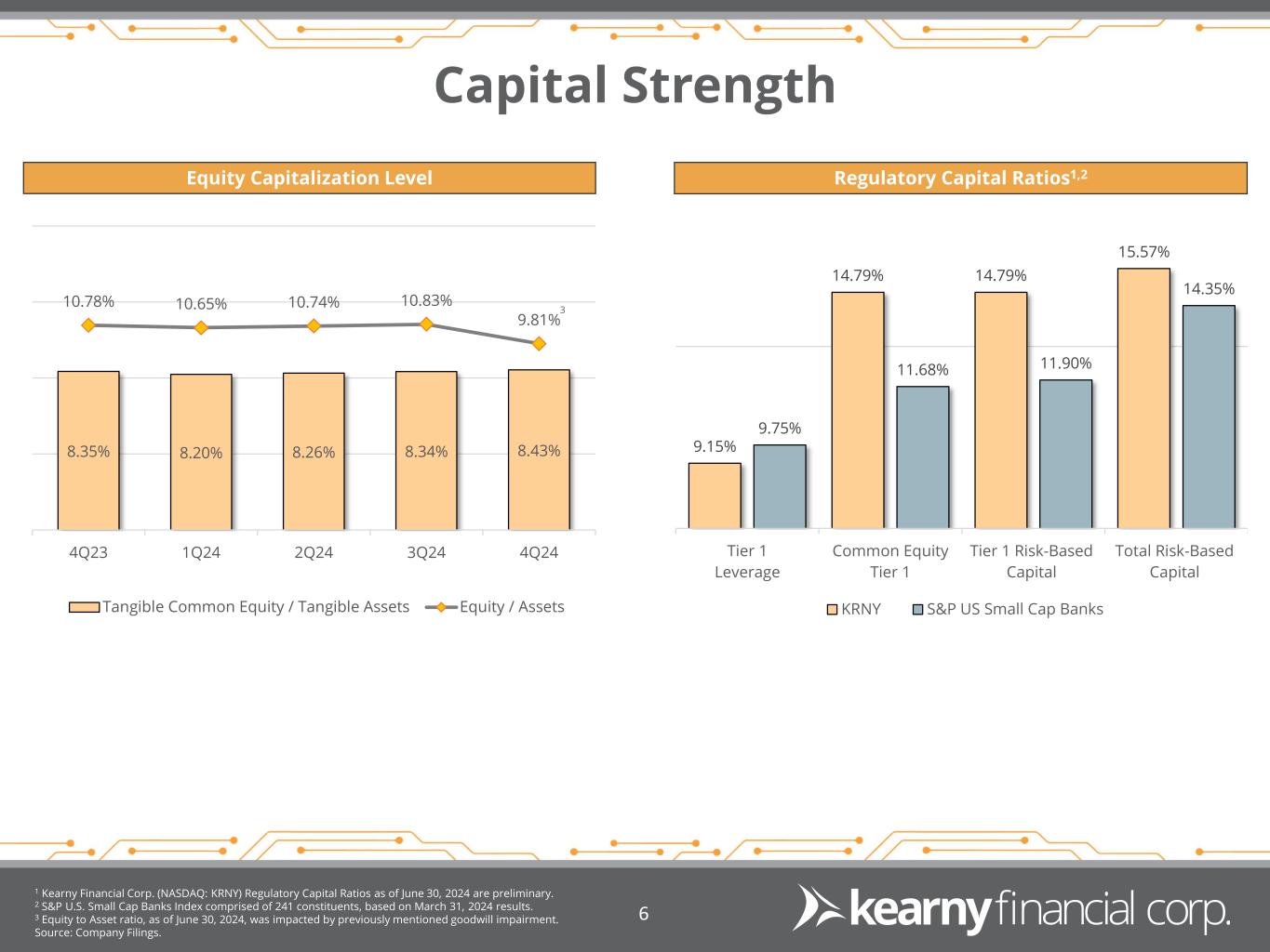 Kearny Financial Corp. NASDAQ: KRNY Headquartered in Fairfield, NJ 43 full-service branches1 in New Jersey and New York City Active acquirer, having completed 7 whole-bank acquisitions since 1999 1 As of June 30, 2024. Source: S&P Global Market Intelligence & Company Filings. 3