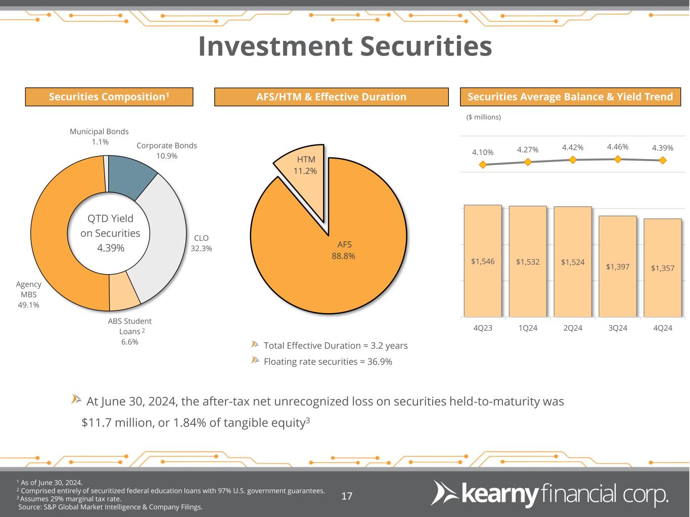 Forward Looking Statements & Financial Measures 2 This presentation may include certain “forward-looking statements,” which are made in good faith by Kearny Financial Corp. (the “Company”) pursuant to the “safe harbor” provisions of the Private Securities Litigation Reform Act of 1995. These forward-looking statements are subject to risks and uncertainties, such as statements of the Company’s plans, objectives, expectations, estimates and intentions that are subject to change based on various important factors (some of which are beyond the Company’s control). In addition to the factors described under Item 1A. Risk Factors in the Company’s Annual Report on Form 10-K, and subsequent filings with the Securities and Exchange Commission, the following factors, among others, could cause the Company’s financial performance to differ materially from the plans, objectives, expectations, estimates and intentions expressed in such forward-looking statements: • the strength of the United States economy in general and the strength of the local economy in which the Company conducts operations, • the effects of, and changes in, trade, monetary and fiscal policies and laws, including interest rate policies of the Board of Governors of the Federal Reserve System, inflation, interest rates, market and monetary fluctuations, • the impact of changes in laws, regulations and government policies regarding financial institutions (including laws concerning taxation, banking, securities and insurance), • changes in accounting policies and practices, as may be adopted by regulatory agencies, the Financial Accounting Standards Board (“FASB”) or the Public Company Accounting Oversight Board, • technological changes, • competition among financial services providers, and • the success of the Company at managing the risks involved in the foregoing and managing its business. The Company cautions that the foregoing list of important factors is not exhaustive. Readers should not place any undue reliance on any forward looking statements, which speak only as of the date made. The Company does not undertake any obligation to update any forward-looking statement, whether written or oral, that may be made from time to time by or on behalf of the Company. This presentation contains financial information determined by methods other than in accordance with accounting principles generally accepted in the United States of America (“GAAP”). Management uses these “non-GAAP” measures in its analysis of the Company’s performance. Management believes these non-GAAP financial measures allow for better comparability of period to period operating performance. Additionally, the Company believes this information is utilized by regulators and market analysts to evaluate a company’s financial condition and therefore, such information is useful to investors. These disclosures should not be viewed as a substitute for operating results determined in accordance with GAAP, nor are they necessarily comparable to non-GAAP performance measures that may be presented by other companies. A reconciliation of the non-GAAP measures used in this presentation to the most directly comparable GAAP measures is provided in the Appendix to this presentation.