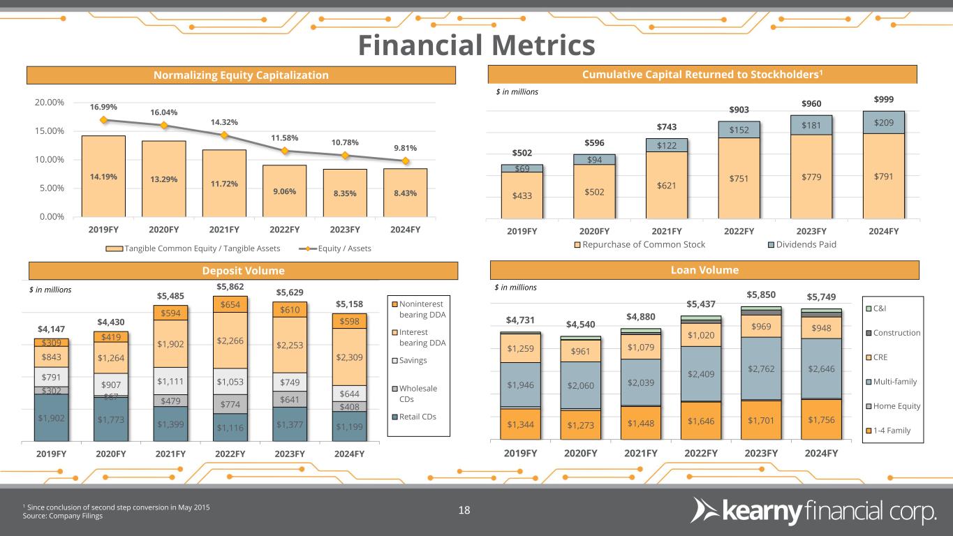 Track Record of Strong Credit Performance 1 Data provided by Federal Reserve Bank of St. Louis. Source: Company Filings. 17 From 2006 to 2023, inclusive of the Global Financial Crisis and the COVID-19 Pandemic, KRNY’s net charge-offs to average total loans totaled 9 bps per year compared to 50 bps for all commercial banks (US Banks not among the top 100)1. 2006 2007 2008 2009 2010 2011 2012 2013 2014 2015 2016 2017 2018 2019 2020 2021 2022 2023 2024 Commercial Banks (not among top 100) KRNY Hurricane Sandy COVID-19 Pandemic Global Financial Crisis Net Charge-offs to Average Total Loans Cumulative charge-offs for KRNY between 2006 and 2024 were minimal, totaling $38.6 million.