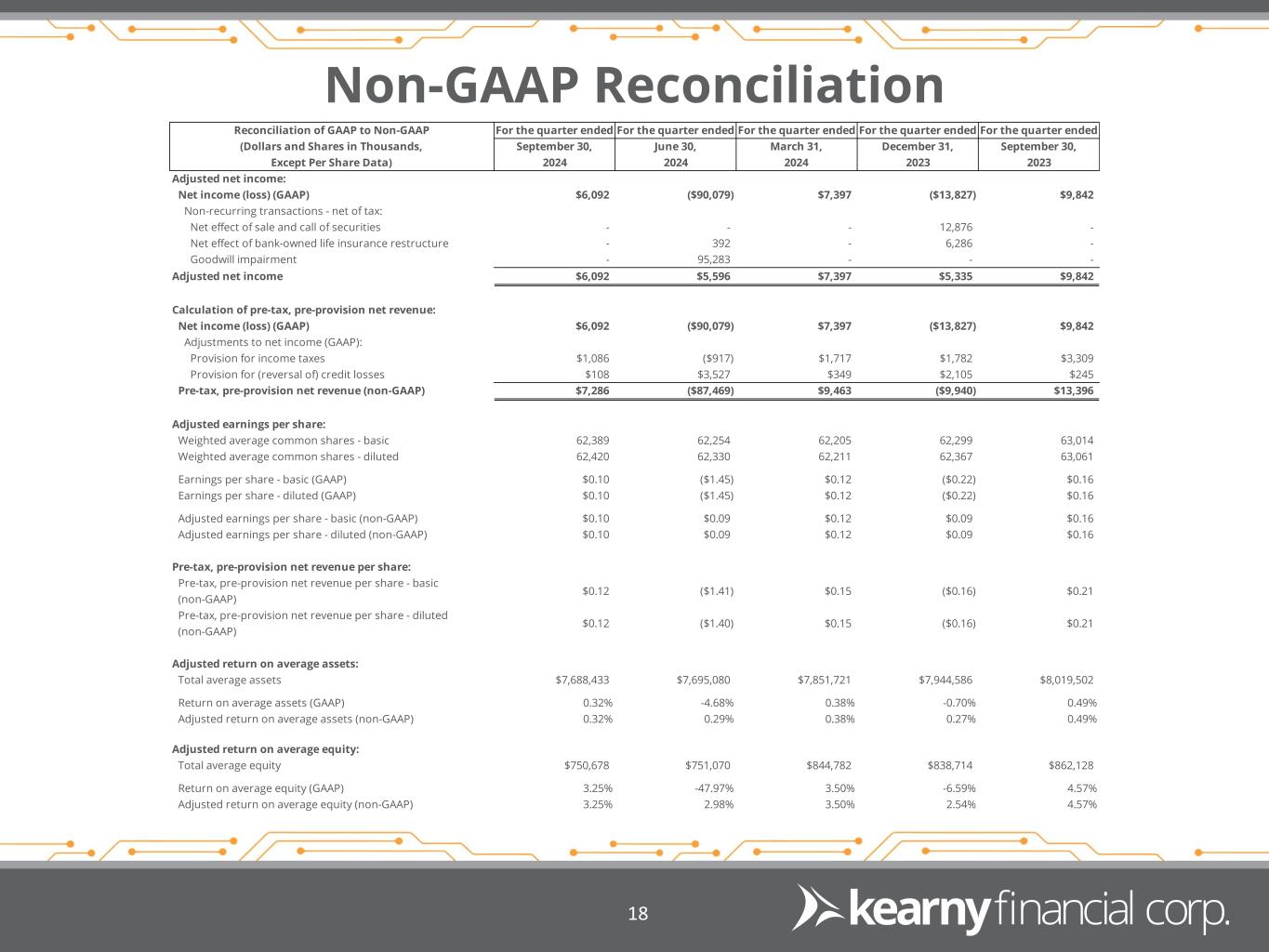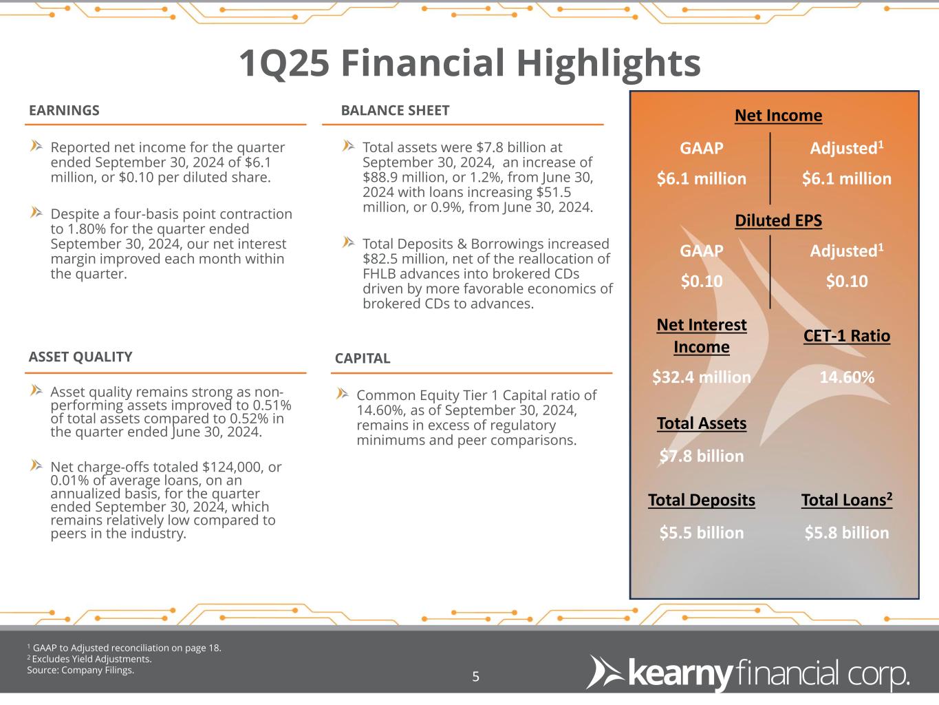 Forward Looking Statements & Financial Measures 2 This presentation may include certain “forward-looking statements,” which are made in good faith by Kearny Financial Corp. (the “Company”) pursuant to the “safe harbor” provisions of the Private Securities Litigation Reform Act of 1995. These forward-looking statements are subject to risks and uncertainties, such as statements of the Company’s plans, objectives, expectations, estimates and intentions that are subject to change based on various important factors (some of which are beyond the Company’s control). In addition to the factors described under Item 1A. Risk Factors in the Company’s Annual Report on Form 10-K, and subsequent filings with the Securities and Exchange Commission, the following factors, among others, could cause the Company’s financial performance to differ materially from the plans, objectives, expectations, estimates and intentions expressed in such forward-looking statements: • the strength of the United States economy in general and the strength of the local economy in which the Company conducts operations, • the effects of, and changes in, trade, monetary and fiscal policies and laws, including interest rate policies of the Board of Governors of the Federal Reserve System, inflation, interest rates, market and monetary fluctuations, • the impact of changes in laws, regulations and government policies regarding financial institutions (including laws concerning taxation, banking, securities and insurance), • changes in accounting policies and practices, as may be adopted by regulatory agencies, the Financial Accounting Standards Board (“FASB”) or the Public Company Accounting Oversight Board, • technological changes, • competition among financial services providers, and • the success of the Company at managing the risks involved in the foregoing and managing its business. The Company cautions that the foregoing list of important factors is not exhaustive. Readers should not place any undue reliance on any forward looking statements, which speak only as of the date made. The Company does not undertake any obligation to update any forward-looking statement, whether written or oral, that may be made from time to time by or on behalf of the Company. This presentation contains financial information determined by methods other than in accordance with accounting principles generally accepted in the United States of America (“GAAP”). Management uses these “non-GAAP” measures in its analysis of the Company’s performance. Management believes these non-GAAP financial measures allow for better comparability of period to period operating performance. Additionally, the Company believes this information is utilized by regulators and market analysts to evaluate a company’s financial condition and therefore, such information is useful to investors. These disclosures should not be viewed as a substitute for operating results determined in accordance with GAAP, nor are they necessarily comparable to non-GAAP performance measures that may be presented by other companies. A reconciliation of the non-GAAP measures used in this presentation to the most directly comparable GAAP measures is provided in the Appendix to this presentation.