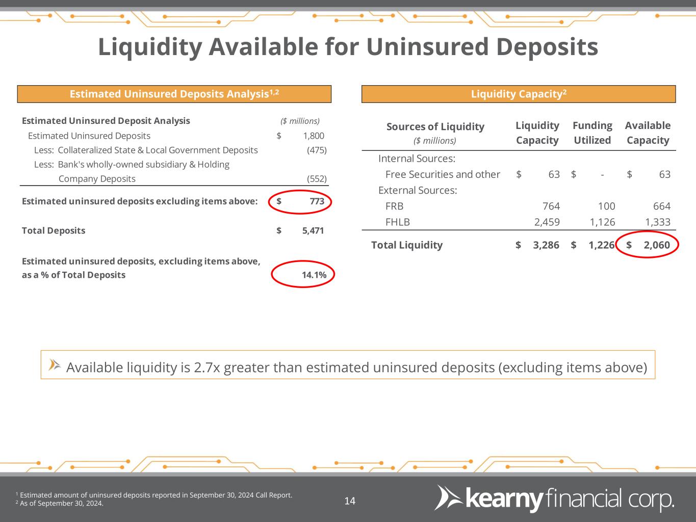 Granular Deposit Franchise 1 As of September 30, 2024. 2 Excludes wholesale and state & local government deposits. Source: S&P Global Market Intelligence & Company Filings. 13 Deposit Trend Non-Maturity Deposit Mix1 ($ millions) $1,300 $1,284 $1,235 $1,199 $1,216 $612 $458 $408 $408 $733 $689 $646 $630 $643 $682 $2,237 $2,347 $2,350 $2,309 $2,248 $595 $584 $586 $598 $592 $5,434 $5,320 $5,209 $5,158 $5,471 1Q24 2Q24 3Q24 4Q24 1Q25 Retail CDs Wholesale CDs Savings Interest Bearing DDA Non-interest Bearing DDA Consumer 64.2% Commercial 22.0% Government 13.8% 22.2% 13.4% 12.5% 41.1% 10.8% Deposit Composition Product # of Accounts Balance ($ millions) Average Balance per Account Checking 52,843 $ 2,361 $ 44,684 Savings 30,590 $ 674 22,018 CDs 24,707 $ 1,212 49,079 Total Retail Deposits 108,140 $ 4,247 $ 39,276 Deposit Segmentation1,2