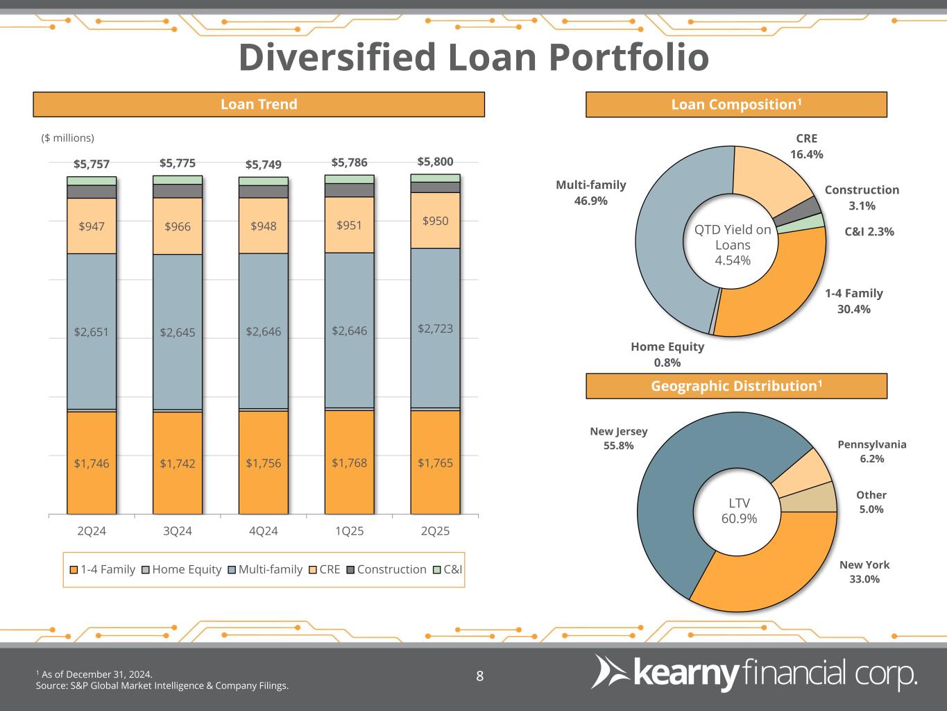 Track Record of Strong Credit Performance 1 Data provided by Federal Reserve Bank of St. Louis. Source: Company Filings. 7 From 2006 to 2024, inclusive of the Global Financial Crisis and the COVID-19 Pandemic, KRNY’s net charge-offs to average total loans totaled 9 bps per year compared to 48 bps for all commercial banks (US Banks not among the top 100)1. Net Charge-offs to Average Total Loans 2006 2007 2008 2009 2010 2011 2012 2013 2014 2015 2016 2017 2018 2019 2020 2021 2022 2023 2024 2Q25 Commercial Banks (not among top 100) KRNY Global Financial Crisis Hurricane Sandy COVID-19 PandemicCumulative charge-offs for KRNY between 2006 and 2Q25 were minimal, totaling $39.3 million.
