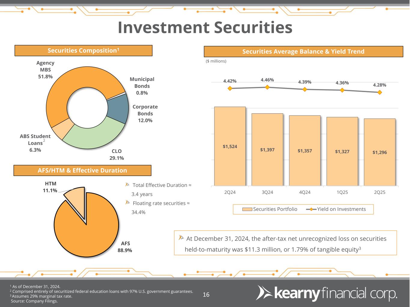 Liquidity Available for Uninsured Deposits Estimated Uninsured Deposits Analysis1,2 1 Estimated amount of uninsured deposits reported in December 31, 2024 Call Report. 2 As of December 31, 2024. 15 Available liquidity is 2.9x greater than estimated uninsured deposits (excluding items above) Total available capacity increased by $256 million from September 30, 2024 and represents 30% of total assets. Liquidity Capacity2 1 Estimated Uninsured Deposit Analysis ($ millions) Estimated Uninsured Deposits 1,936$ Less: Collateralized State & Local Government Deposits (539) Less: Bank's wholly-owned subsidiary & Holding Company Deposits (599) Estimated uninsured deposits excluding items above: 798$ Total Deposits 5,671$ Estimated uninsured deposits, excluding items above, as a % of Total Deposits 14.1% Sources of Liquidity ($ millions) Liquidity Capacity Funding Utilized Available Capacity Internal Sources: Free Securities and other 96$ -$ 96$ External Sources: FRB 1,605 - 1,605 FHLB 1,885 1,270 615 Total Liquidity 3,586$ 1,270$ 2,316$