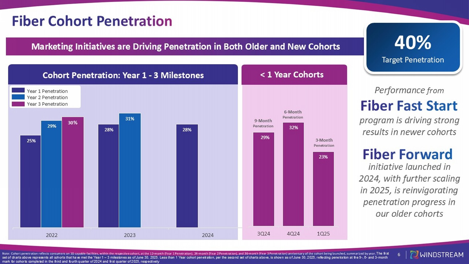 25% 28% 28% 29% 31% 30% 2022 2023 2024 Marketing Initiatives are Driving Penetration in Both Older and New Cohorts Note: Cohort penetration reflects consumers on 1G capable facilities, within the respective cohort, at the 12 - month (Year 1 Pene tration), 24 - month (Year 2 Penetration), and 36 - month (Year 3 Penetration) anniversary of the cohort being launched, summarized by year. The first set of charts above represents all cohorts that have met the Year 1 – 3 milestones as of June 30, 2025. Less than 1 Year cohort penetration, per the second set of charts above, is shown as of June 30, 2025, reflecting penetration at the 9 - , 6 - and 3 - month mark for cohorts completed in the third and fourth quarter of 2024 and first quarter of 2025, respectively Cohort Penetration: Year 1 - 3 Milestones 6 Year 1 Penetration Year 2 Penetration Year 3 Penetration 40% Target Penetration Performance from program is driving strong results in newer cohorts initiative launched in 2024, with further scaling in 2025, is reinvigorating penetration progress in our older cohorts 29% 32% 23% 3Q24 4Q24 1Q25 3 - Month Penetration 6 - Month Penetration 9 - Month Penetration < 1 Year Cohorts