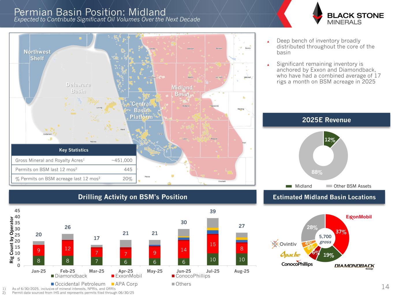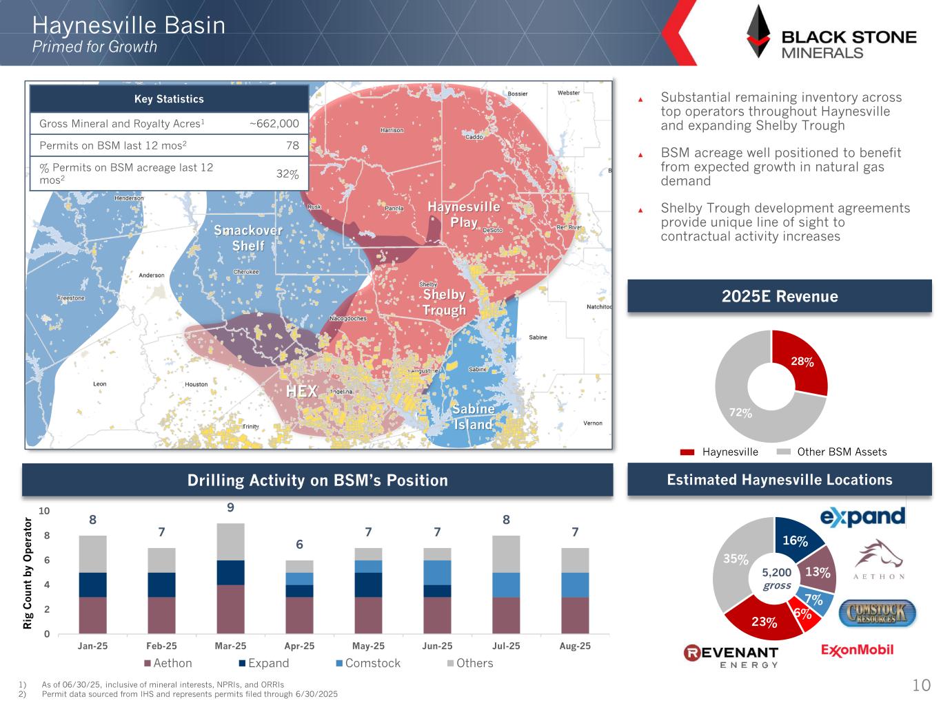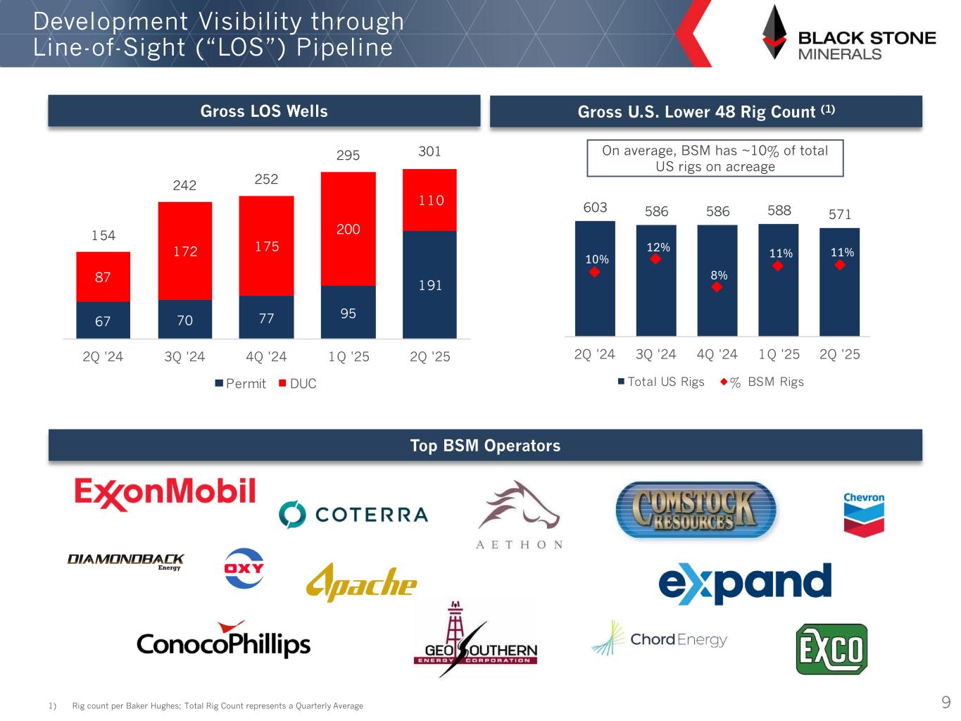 Gross LOS Wells Top Operators LOS Well Pipeline 0 5 5 5 5 0 0 20 0 00 2Q 2 Q 2 Q 2 Q 25 2Q 25 Total S Rigs BSM Rigs 0 5 2 5 200 0 5 2 2 252 2 5 0 2Q 2 Q 2 Q 2 Q 25 2Q 25 Permit D C On average, BSM has ~10% of total US rigs on acreage Development Visibility through Line-of-Sight (“LOS”) Pipeline Gross U.S. Lower 48 Rig Count (1) Top BSM Operators 91) Rig count per Baker Hughes; Total Rig Count represents a Quarterly Average