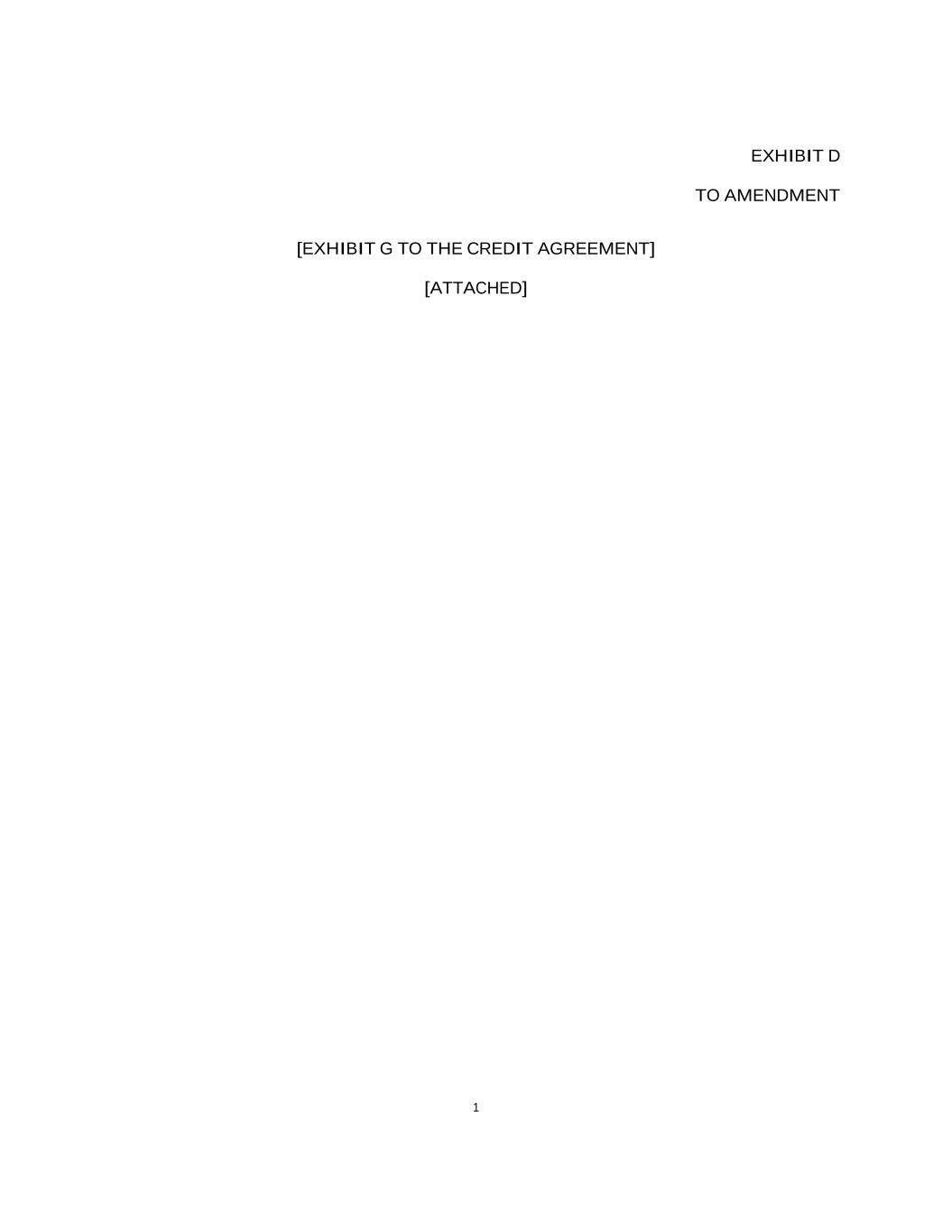 1 EXHIBIT D TO AMENDMENT [EXHIBIT G TO THE CREDIT AGREEMENT] [ATTACHED]