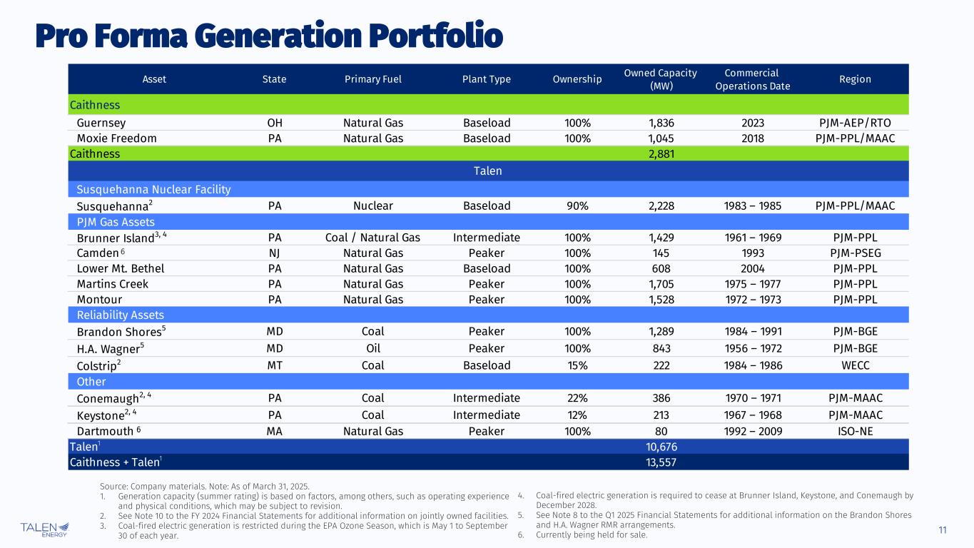 2 The information contained herein, as well as any information that has been supplied orally in connection herewith, speaks only as of the date of this presentation. Talen Energy Corporation (“Talen,” “TEC,” the “Company,” “we,” “our,” or “us”) and our affiliates and representatives expressly disclaim any obligation to update any information contained herein, whether as a result of new information or circumstances, future events or otherwise. The information contained herein is summary. For additional information, see the Company’s historical financial statements and other information included in its periodic reports and other filings with the Securities and Exchange Commission (the “SEC”) (available at www.sec.gov/edgar). Nothing contained herein should be construed as legal, business, tax, accounting or other professional advice, and you should consult your own advisors regarding such matters. These materials should not be relied upon for the maintenance of your books and records for any tax, accounting, legal or other procedures. Non-GAAP Financial Measures We include in this presentation Adjusted EBITDA and Adjusted Free Cash Flow, which we use as measures of our performance and liquidity, and which are not financial measures prepared under U.S. Generally Accepted Accounting Principles (“GAAP”). Non-GAAP financial measures, such as Adjusted EBITDA and Adjusted Free Cash Flow, do not have definitions under GAAP and may be defined differently by, and not be comparable to, similarly titled measures used by other companies or used in our credit facilities, the indentures governing our notes or any of our other debt agreements. Generally, a non-GAAP financial measure is a numerical measure of financial performance, financial position or cash flows that excludes (or includes) amounts that are included in (or excluded from) the most directly comparable measure calculated and presented in accordance with GAAP. Management cautions investors not to place undue reliance on such non-GAAP measures, but to consider them along with their most directly comparable GAAP measures. Adjusted EBITDA and Adjusted Free Cash Flow have limitations as analytical tools and should not be considered in isolation or as a substitute for analyzing our results as reported under GAAP. Due to the difficulty in predicting certain components of Adjusted EBITDA and Adjusted Free Cash Flow for Moxie Freedom and Guernsey with a reasonable degree of certainty, we are unable to reconcile these non-GAAP financial measures to the comparable GAAP measures without unreasonable efforts. Market and Industry Data This presentation includes market data and other information from independent industry publications, as well as surveys and our own research and knowledge of the industry. Some data is also based on management’s estimates, which are derived from our review of internal sources, as well as the independent sources described above. Although we believe these sources are reliable, the third-party information contained in this presentation has not been independently investigated, verified or audited and, therefore, we cannot guarantee the accuracy or completeness of such information. As a result, you should be aware that market share, ranking and other similar data set forth in this presentation, and estimates and beliefs based on such data, may not be reliable. Forward Looking Statements Statements contained in this presentation concerning expectations, beliefs, plans, objectives, goals, strategies, future events or performance, shareholder returns and underlying assumptions, and other statements that are not statements of historical fact are “forward-looking statements,” and should be considered estimates, assumptions or projections. These statements often include words such as “believe,” “expect,” “anticipate,” “intend,” “plan,” “estimate,” “target,” “project,” “forecast,” “seek,” “will,” “may,” “should,” “could,” “would” “goal”, “predict”, “continue”, “potential” or similar expressions. Any such forward-looking statements reflect various estimates and assumptions. Although we believe that the expectations and assumptions reflected in these statements are reasonable, there can be no assurance that they will prove to be correct. No representations or warranties are made by Talen or any of its affiliates, shareholders, directors, officers, employees, agents, partners or professional advisors as to the accuracy or achievability of any such forward-looking statements. Except as otherwise required by law, Talen undertakes no obligation to update any forward-looking statement to reflect new information or circumstances, future events or otherwise after the date on which such statement is made. Forward-looking statements are subject to many risks and uncertainties, and actual results may differ materially due to many factors. New factors emerge from time to time, and it is not possible for us to predict all of these factors. In addition to the specific factors discussed in the sections entitled “Cautionary Note Regarding Forward-Looking Information” and “Risk Factors” in our periodic reports and other filings with the SEC, the following are among the important factors that could cause actual results to differ materially from forward-looking statements: Talen’s or its subsidiaries’ levels of indebtedness; the terms and conditions of debt instruments that may restrict Talen’s ability to operate its business; operational, price and credit risks in the wholesale and retail electricity markets (including as a result of increases in the supply of electricity generally due to new power or intermittent renewable power generation); the effectiveness of Talen’s risk management techniques, including hedging, with respect to electricity and fuel prices, interest rates and counterparty and joint venture partner credit
