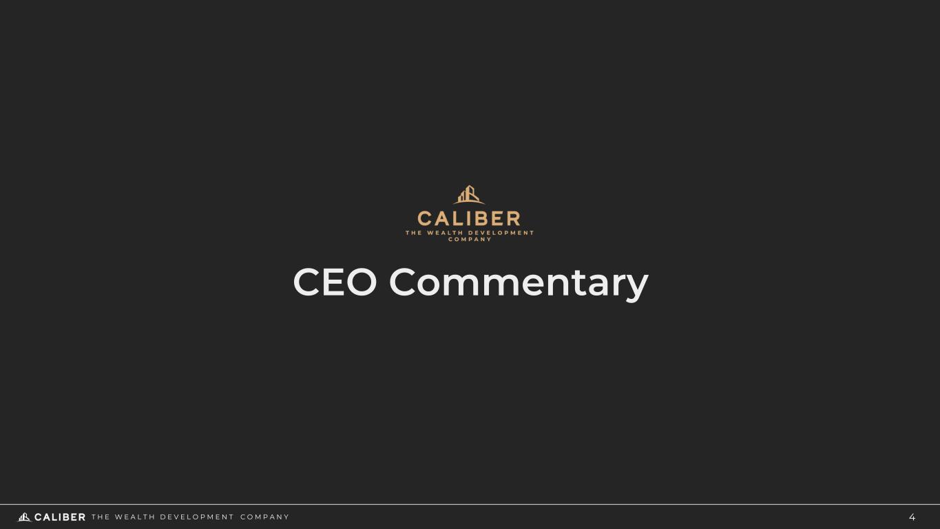 Today’s Speakers 3T H E W E A L T H D E V E L O P M E N T C O M P A N Y Chris Loeffler CHIEF EXECUTIVE OFFICER Jade Leung CHIEF FINANCIAL OFFICER Chris Loeffler has served as the CEO and Chairman of Caliber’s Board of Directors since its inception. As CEO, Chris directs and executes global strategy, oversees investments and fund management, and contributes to private and public capital formation. As a Co-Founder Chris took an early role forming the Company’s financial and operational infrastructure and navigating the vertical integration of all real estate and investment services. Jade Leung is Caliber’s CFO and corporate secretary. As CFO, Jade oversees all aspects of accounting and controllership, financial planning and analysis, tax, financial reporting, and treasury functions at Caliber. Jade is also responsible for the strategic direction of Caliber’s information technology and data security initiatives. Prior to joining Caliber, Jade spent 12 years with PwC, where he managed audit and accounting advisory services. Notably, Jade participated in over $1 billion of public market transactions and financing arrangements for companies.