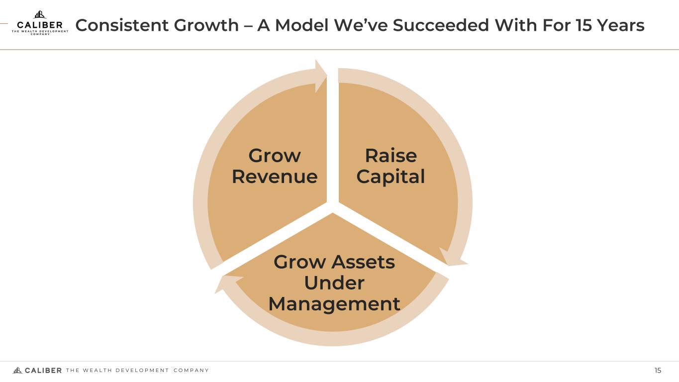 Caliber Hospitality Trust – Another Path To Revenue Growth 14T H E W E A L T H D E V E L O P M E N T C O M P A N Y Using the Caliber infrastructure to launch public investment products