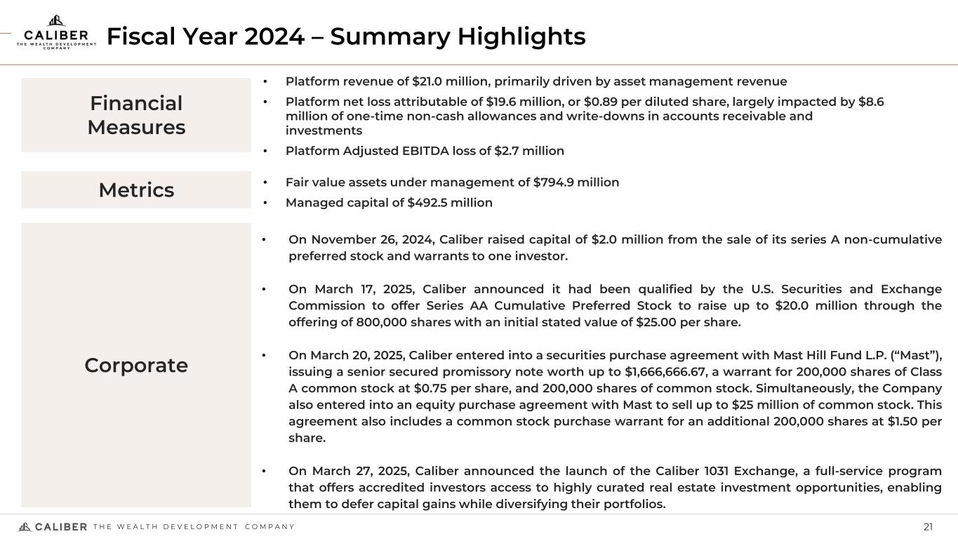 EX-99.2 2 ex992_caliber4q24earning.htm EX-99.2 ex992_caliber4q24earning