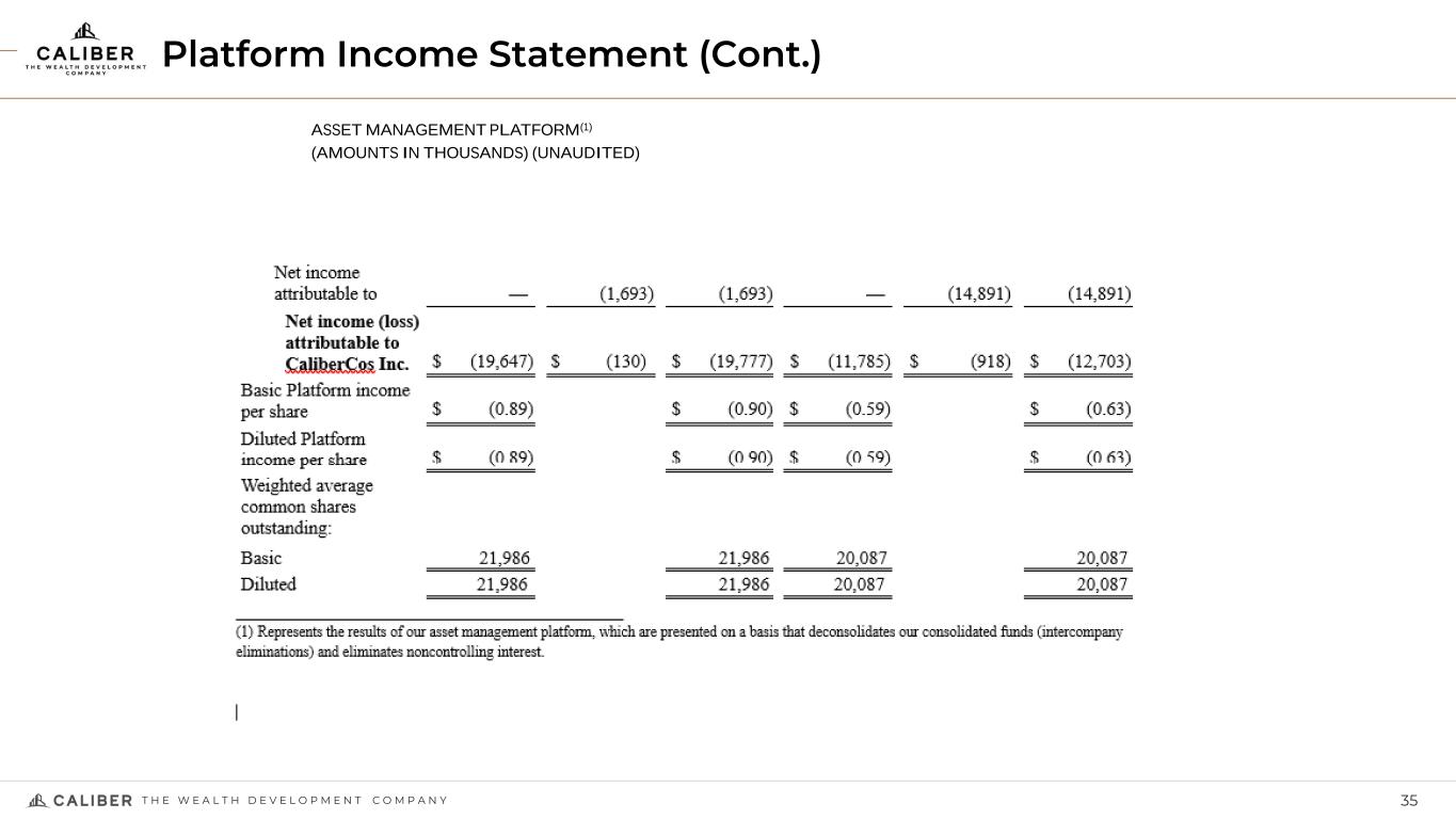 Platform Income Statement 34T H E W E A L T H D E V E L O P M E N T C O M P A N Y ASSET MANAGEMENT PLATFORM(1) (AMOUNTS IN THOUSANDS) (UNAUDITED)