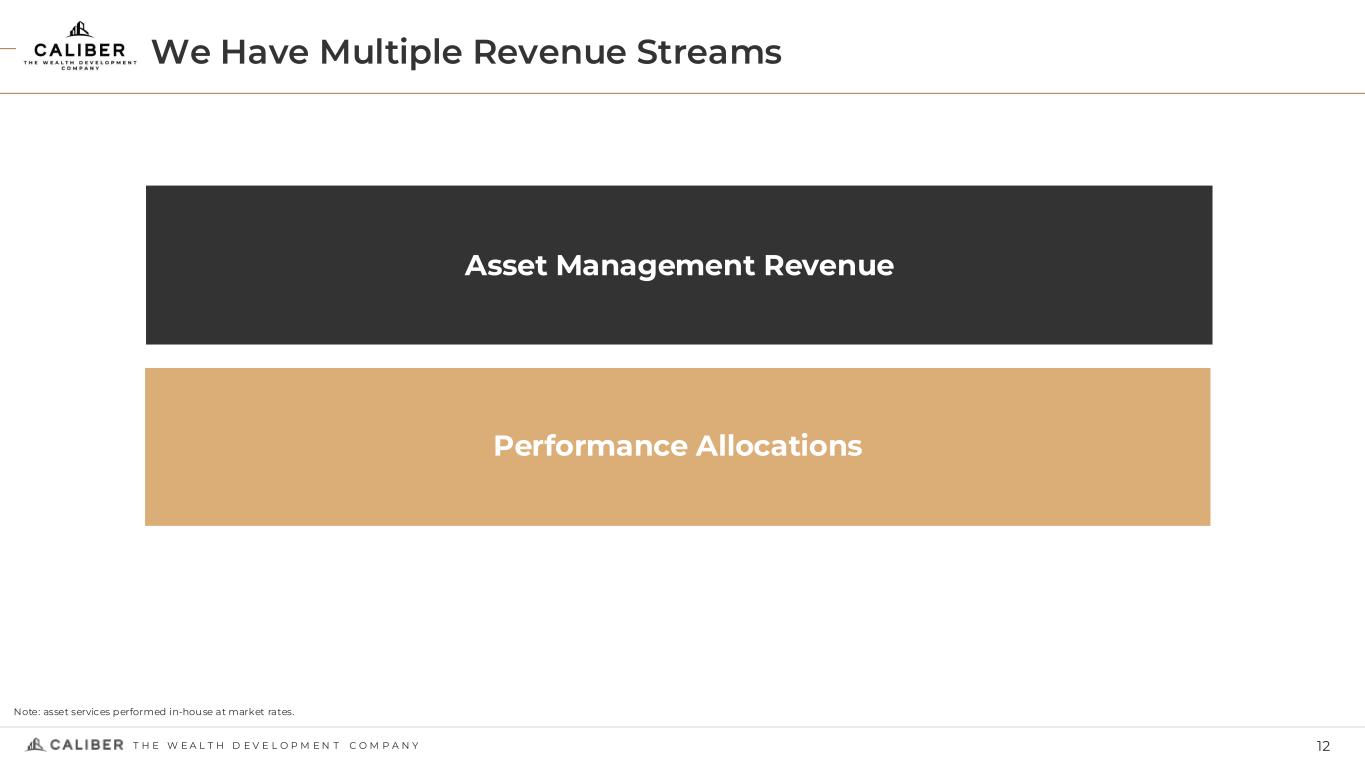 Performance Allocations Asset Management Revenue We Have Multiple Revenue Streams 12T H E W E A L T H D E V E L O P M E N T C O M P A N Y Note: asset services performed in-house at market rates.