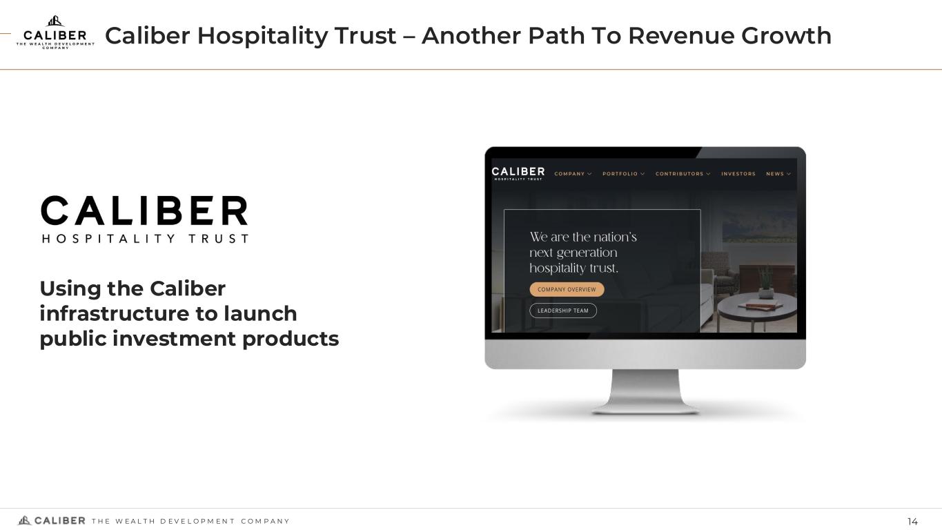 Caliber Hospitality Trust – Another Path To Revenue Growth 14T H E W E A L T H D E V E L O P M E N T C O M P A N Y Using the Caliber infrastructure to launch public investment products
