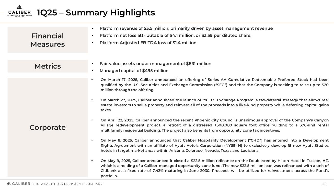 EX-99.3 4 caliber1q25earningssuppl.htm EX-99.3 caliber1q25earningssuppl