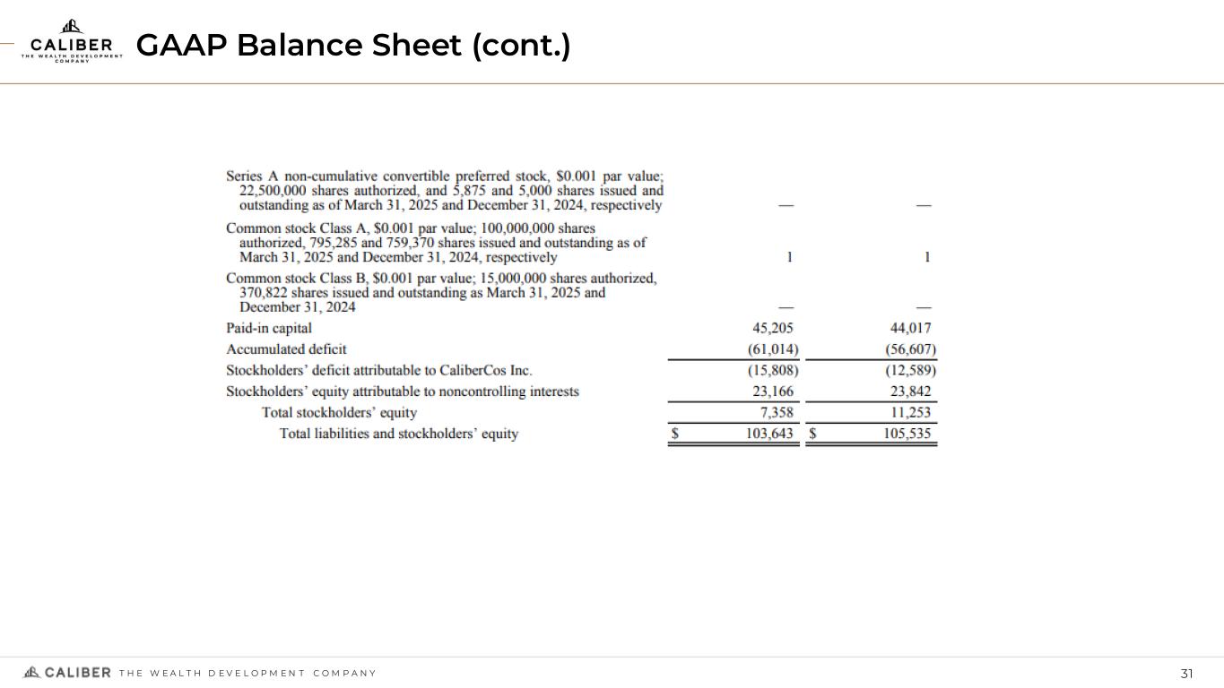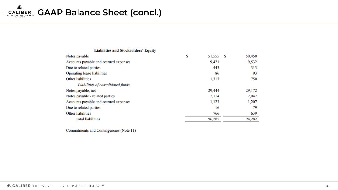 GAAP Balance Sheet (concl.) 30T H E W E A L T H D E V E L O P M E N T C O M P A N Y
