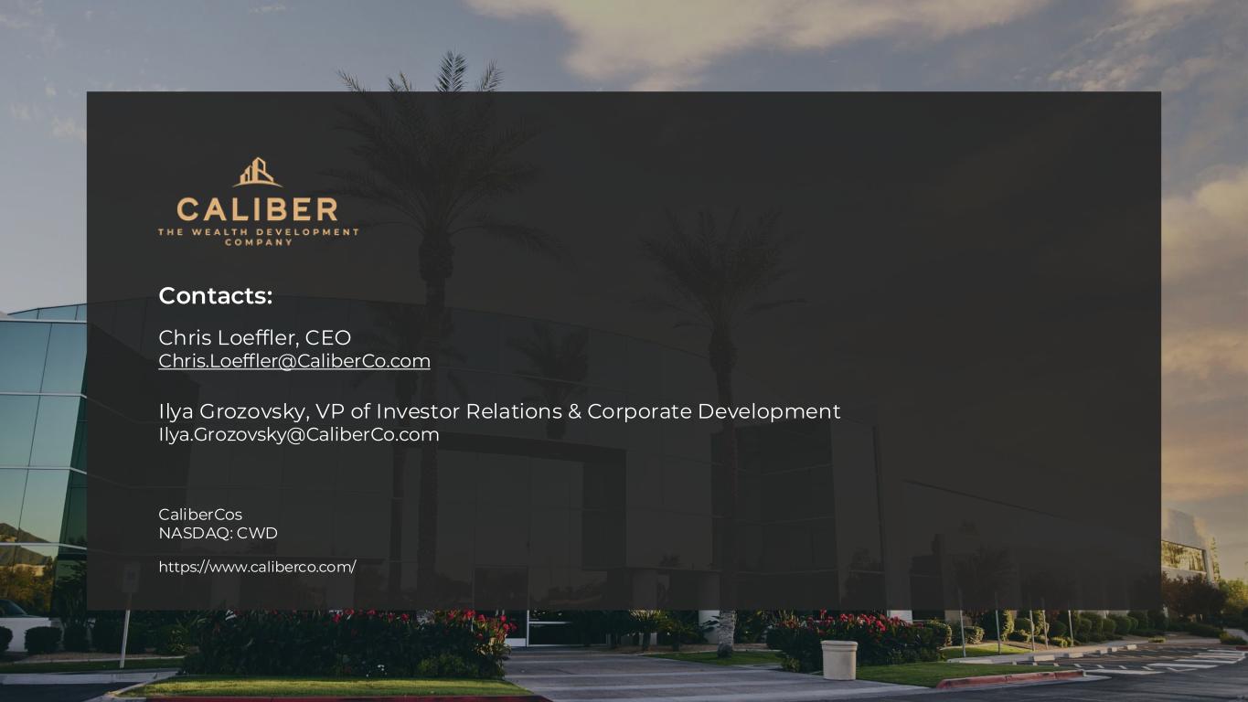 https://www.caliberco.com/ CaliberCos NASDAQ: CWD Contacts: Chris Loeffler, CEO Chris.Loeffler@CaliberCo.com Ilya Grozovsky, VP of Investor Relations & Corporate Development Ilya.Grozovsky@CaliberCo.com