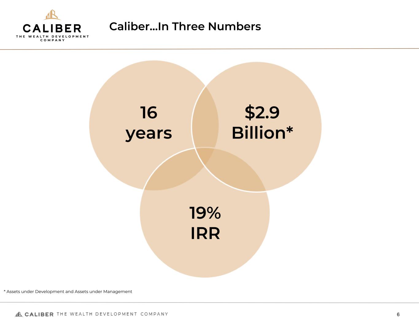 Caliber...In Three Numbers 6 * Assets under Development and Assets under Management 16 years $2.9 Billion* 19% IRR