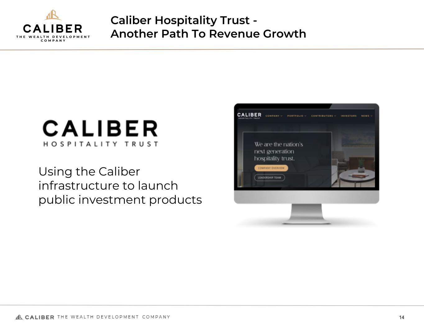 Caliber Hospitality Trust - Another Path To Revenue Growth 14 Using the Caliber infrastructure to launch public investment products