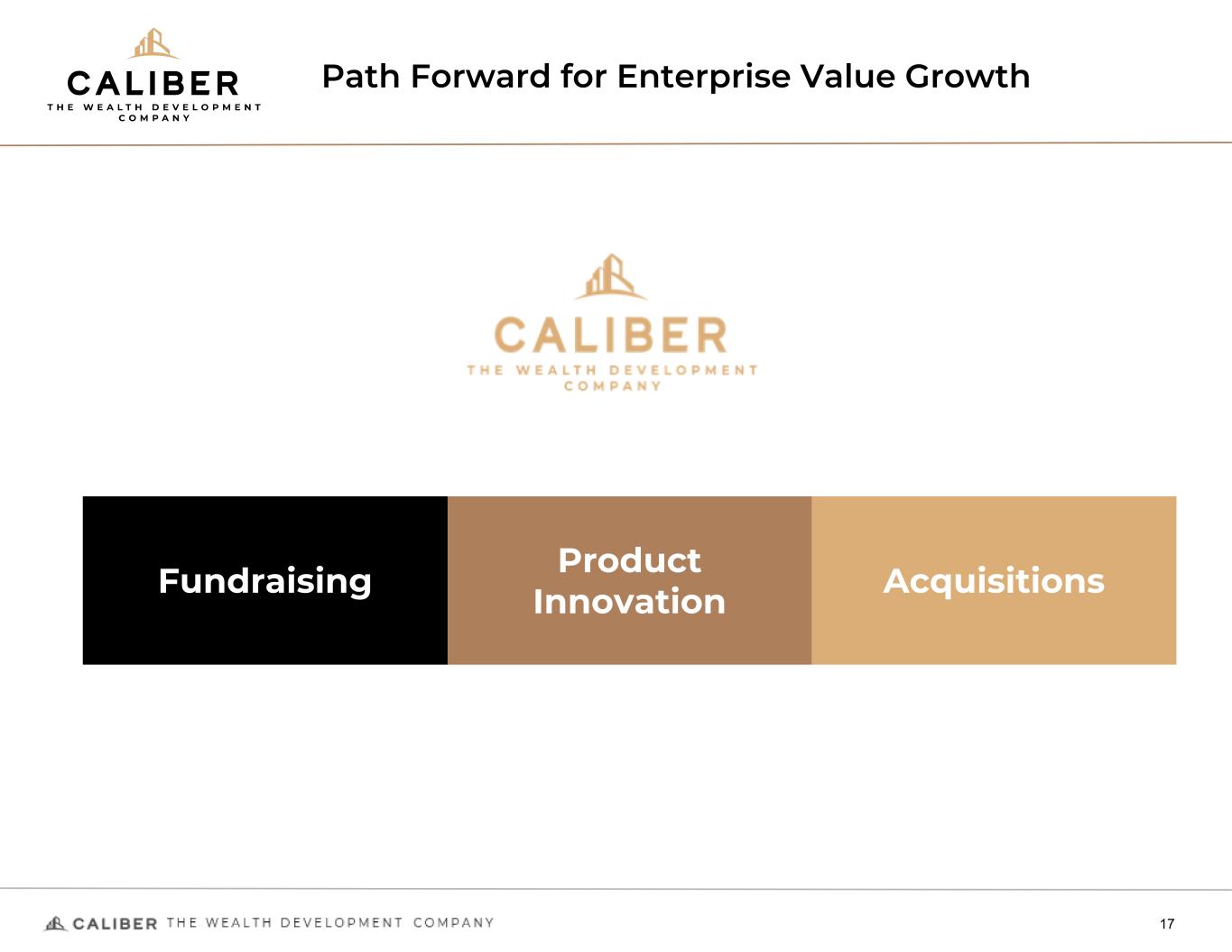 Path Forward for Enterprise Value Growth 17 Product InnovationFundraising Acquisitions