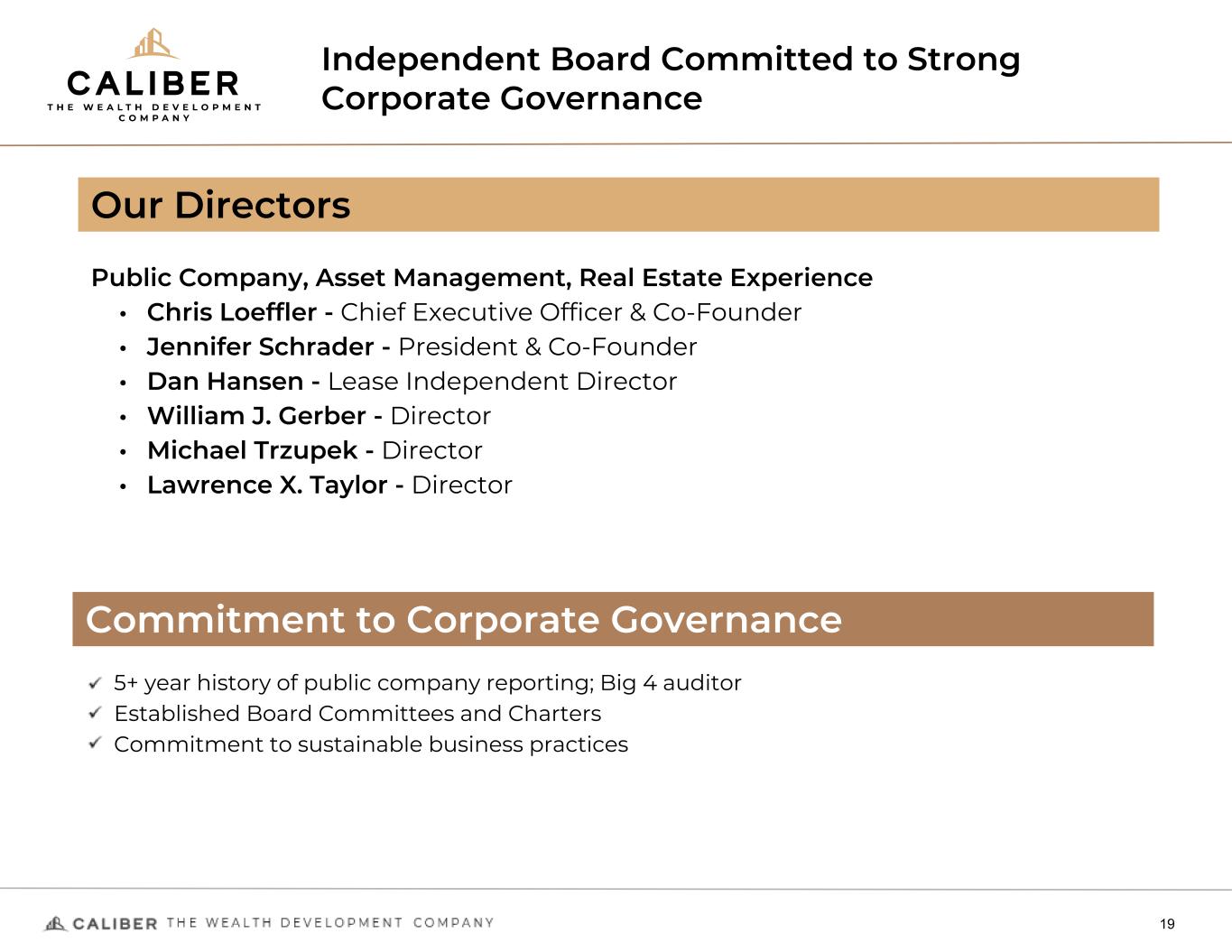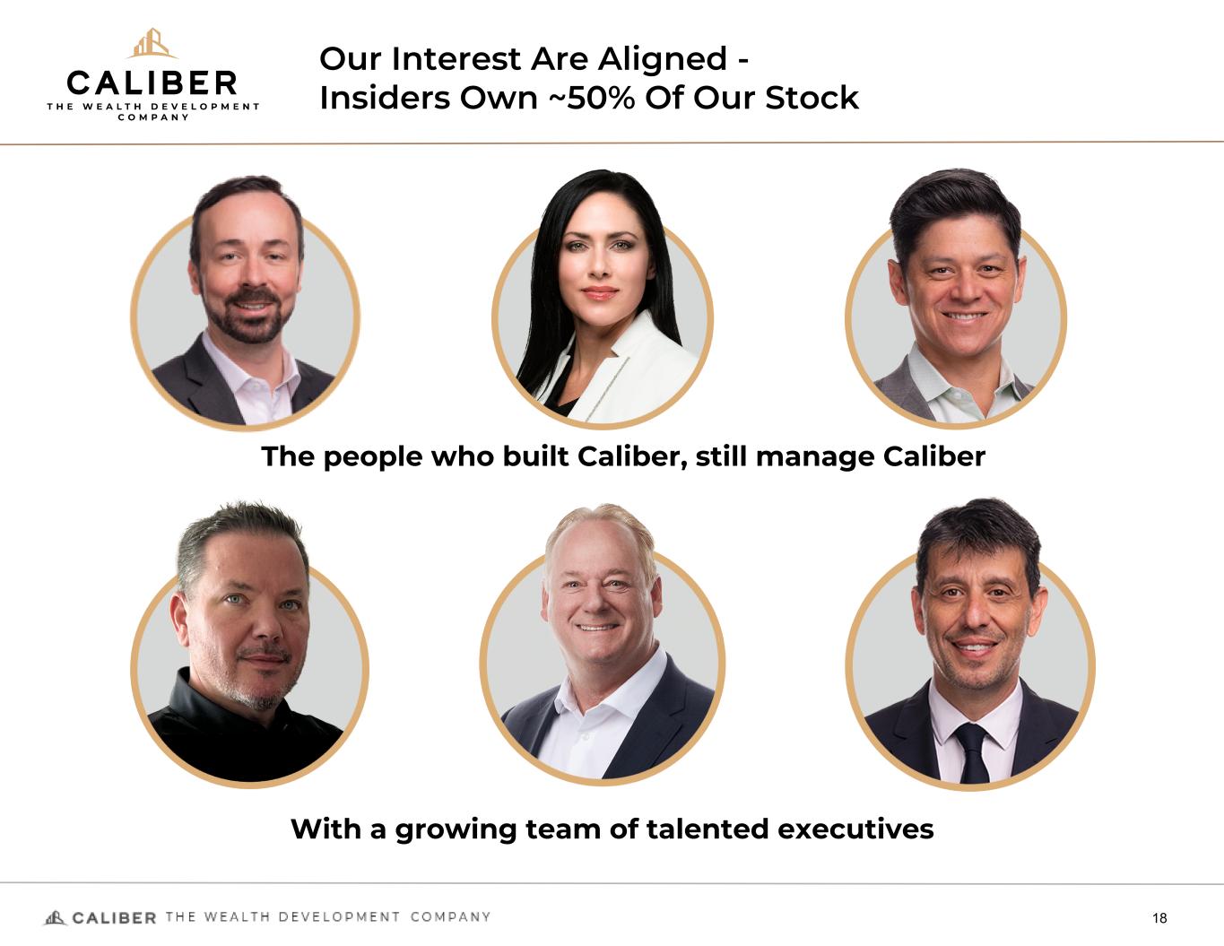 Our Interest Are Aligned - Insiders Own ~50% Of Our Stock 18 The people who built Caliber, still manage Caliber With a growing team of talented executives