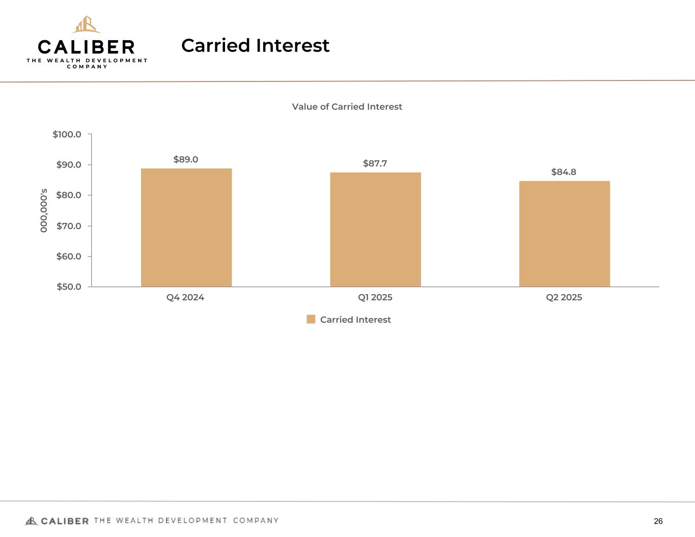 Carried Interest 26 0 0 0 ,0 0 0 's Value of Carried Interest $89.0 $87.7 $84.8 Carried Interest Q4 2024 Q1 2025 Q2 2025 $50.0 $60.0 $70.0 $80.0 $90.0 $100.0