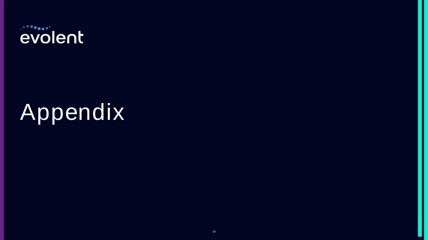 Reiterating 2023 outlook 2024 Adjusted EBITDA target and long-term growth rates • 2023 revenue range of $1.945 billion - $1.965 billion; 2023 Adjusted EBITDA1, 2 $192-$200 million • Q4 2023 revenue range of $537 million - $557 million; Q4 Adjusted EBITDA1,2 of $45 million - $53 million • $300M run-rate Adjusted EBITDA1,2 exiting 2024 • Out-years 2025+: annual revenue mid-teens growth%++ annual Adjusted EBITDA growth1,2 20%+ 1. Non-GAAP measure, see “Non-GAAP Financial Measures” for definition. 2. Evolent does not provide a reconciliation of non-GAAP forward-looking measures as certain financial information, the probable significance of which cannot be determined, is not available and cannot be reasonably estimated. Refer to "Non-GAAP Measures" in the Appendix. 17