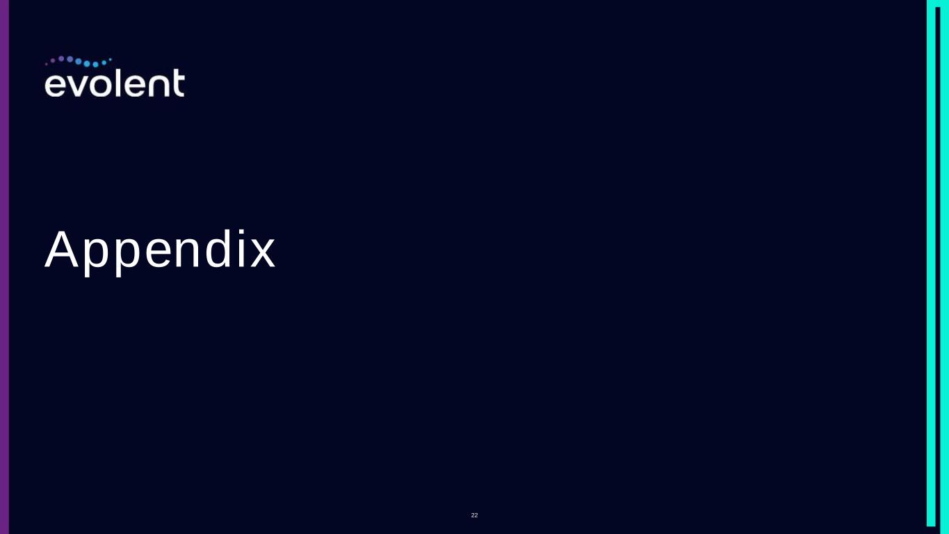 Outlook1 for 2024 Adjusted EBITDA target and long-term growth rates • 2024 revenue range of $2.53-$2.60 billion; 2024 Adjusted EBITDA2,3 $235-$265 million • Q2 2024 revenue range of $625-$645 million; Q2 Adjusted EBITDA2,3 of $48-$62 million • $300M run-rate Adjusted EBITDA2,3 exiting 2024 • Out-years 2025+: annual revenue mid-teens growth%++ annual Adjusted EBITDA growth2,3 20%+ 1. Outlook as of May 9, 2024, based on guidance provided by Evolent on that date. 2. Non-GAAP measure, see “Non-GAAP Financial Measures” for definition. 3. Evolent does not provide a reconciliation of non-GAAP forward-looking measures as certain financial information, the probable significance of which cannot be determined, is not available and cannot be reasonably estimated. Refer to "Non-GAAP Measures" in the Appendix. 21 Profitability