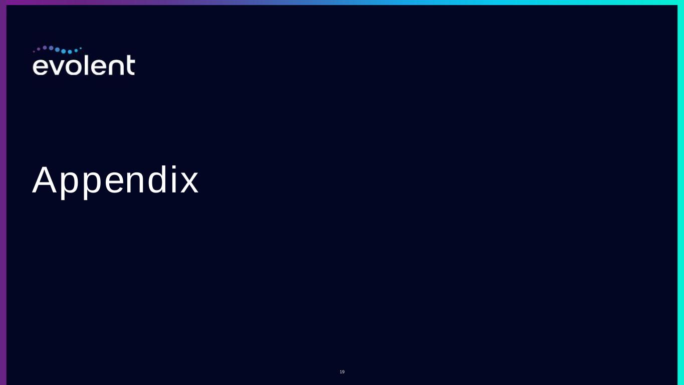 Organic Growth Profitability Disciplined Capital Allocation ✓ Continued balanced approach to growth – targeting strong expansion in both Specialty Technology & Services (T&S) and Performance Suite (PS) solutions. ✓ Long term target: maintain prior 15%+ annual revenue outlook.2 ✓ Technology & Services: Expect >80% Adjusted EBITDA contribution from T&S in 2025, anticipating expanding gross margins into 2026 from increased process automation and efficiency gains. ✓ Adjusted Performance Suite going forward: ✓ Continued commitment to risk model with narrowed corridors ✓ Currently forecasting oncology expenses after management to increase by 12% for 2025, compared to historical expectations of ~8% ✓ Reworked contracts and logo retention demonstrate strength of platform ✓ Expect stabilization of medical costs. ✓ Long term target: maintain prior annual 20% Adjusted EBITDA growth off 2025 base. ✓ No change in capital priorities, but not focused on M&A in near-term. ✓ Strong liquidity position. ✓ Expect to address 2025 convertible notes with new Delayed-Draw Term Loans – no other maturities until 2028. ✓ Board to continue to evaluate all options to drive shareholder value. Reiterating Long-Term Outlook Full 2025 outlook to be disclosed on February 201, 2025 17 1. Evolent plans to release its fourth quarter 2024 earnings on this date. A press release with webcast details will be published shortly. 2. Except as driven by any one-time or temporary shifts from Performance Suite to Technology & Services (e.g., a conversion from PS to T&S could cause total rate to be below 15% in a given year)
