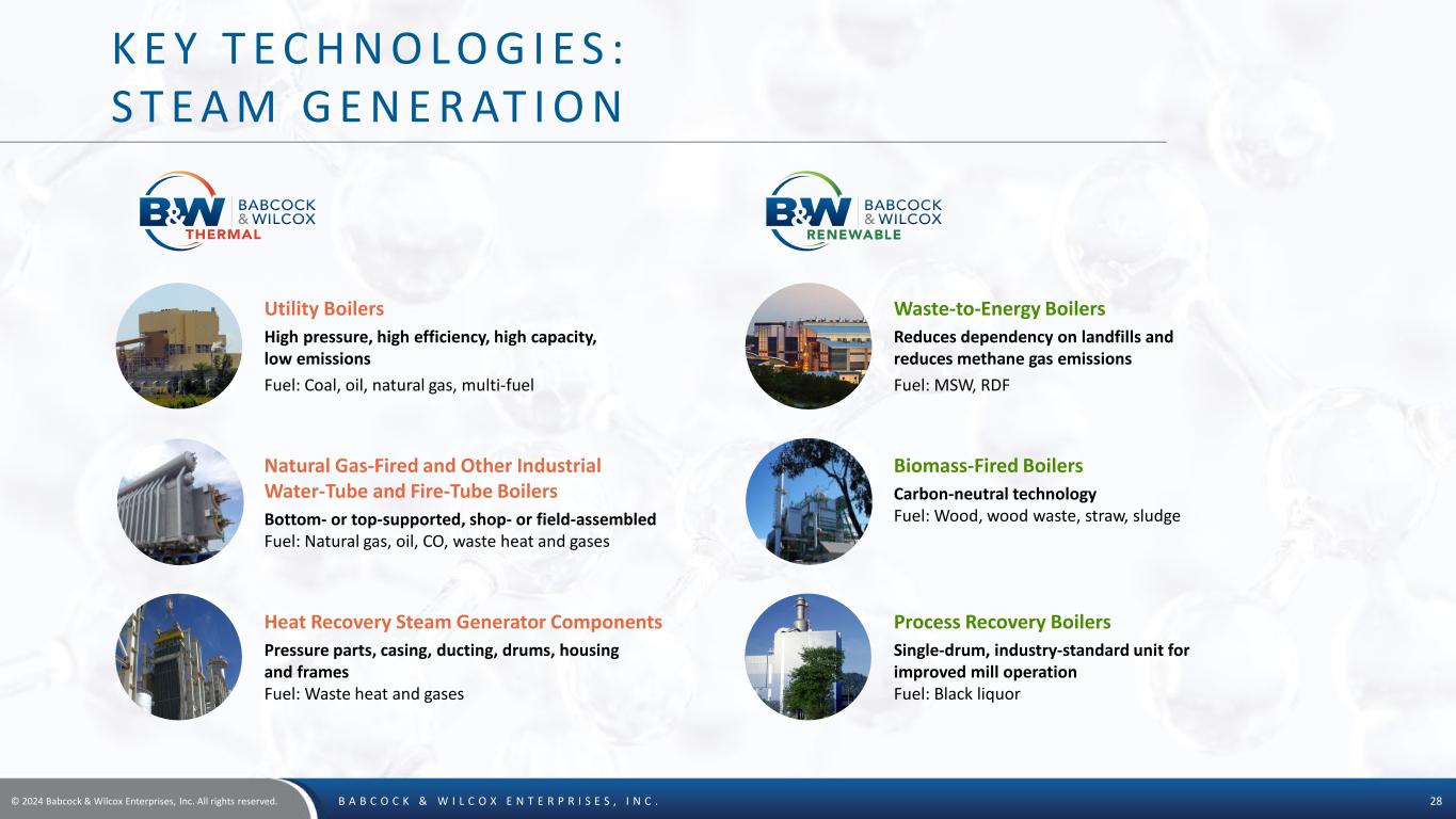 © 2024 Babcock & Wilcox Enterprises, Inc. All rights reserved. B A B C O C K & W I L C O X E N T E R P R I S E S , I N C . 27 K E Y T E C H N O LO G I E S A N D C A PA B I L I T I E S