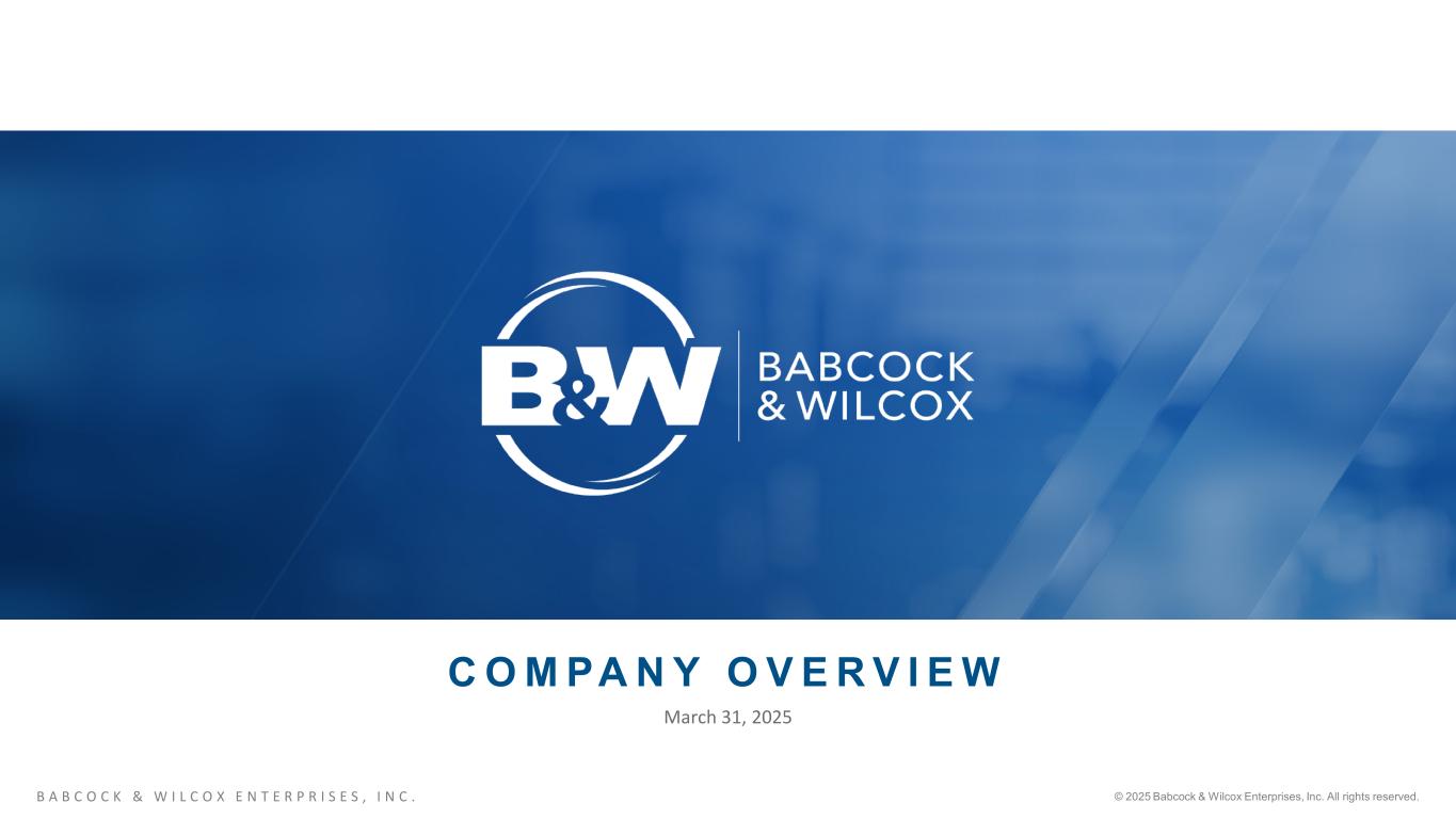 B A B C O C K & W I L C O X E N T E R P R I S E S , I N C . © 2025 Babcock & Wilcox Enterprises, Inc. All rights reserved.1 C O M PA N Y O V E R V I E W March 31, 2025
