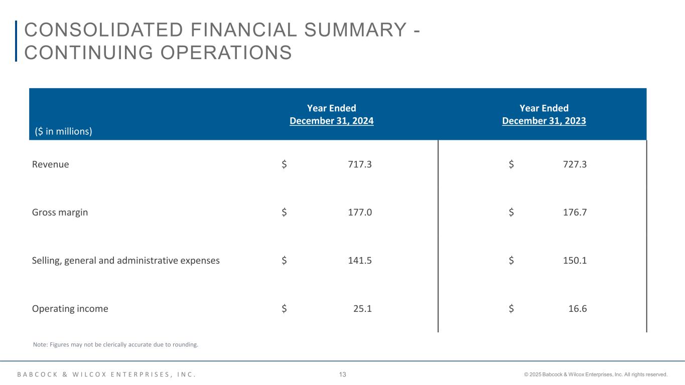 B A B C O C K & W I L C O X E N T E R P R I S E S , I N C . © 2025 Babcock & Wilcox Enterprises, Inc. All rights reserved.12 FINANCIAL INFORMATION