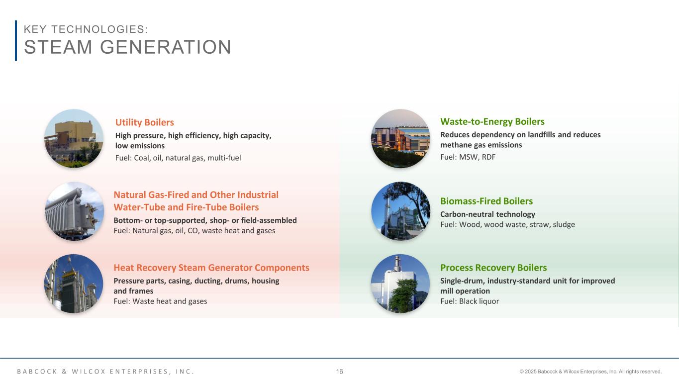 B A B C O C K & W I L C O X E N T E R P R I S E S , I N C . © 2025 Babcock & Wilcox Enterprises, Inc. All rights reserved.15 KEY TECHNOLOGIES AND CAPABILITIES