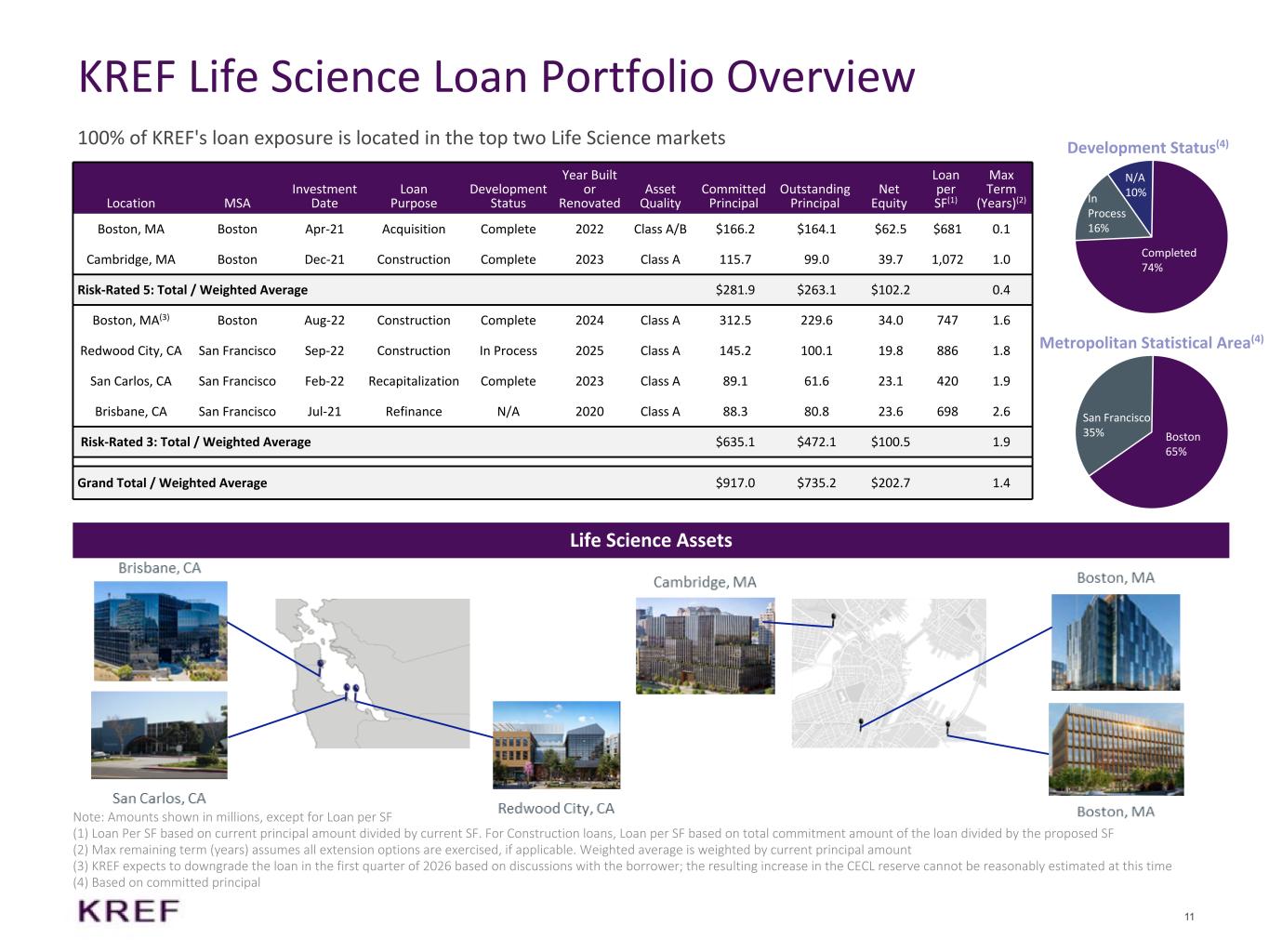 10 0% 9% 78% 6% 7% 1 2 3 4 5 Weighted Average Risk Rating(2): 3.2 Portfolio Credit Quality Overview Note: The charts above are based on percentage of our loan portfolio (1) LTV is generally based on the initial loan amount divided by the as-is appraised value as of the date the loan was originated. Weighted average LTV excludes risk-rated 5 loans (2) Weighted average is weighted by current principal amount Collected 100% of interest payments due on the loan portfolio in 4Q'25 Loan-to-Value(1) Risk Rating Distribution Weighted Average LTV(2): 65% Loan Count 4Q '2 5 Weighted Average LTV(2): 66% Weighted Average Risk Rating(2): 3.1 3Q '2 5 25% 23% 18% 30% 4% 0 - 60% 60 - 65% 65 - 70% 70 - 75% 75 - 80% 25% 20% 17% 30% 8% 0 - 60% 60 - 65% 65 - 70% 70 - 75% 75 - 80% 0 3 3 244 0 2 1 446Loan Count 0% 5% 82% 2% 11% 1 2 3 4 5