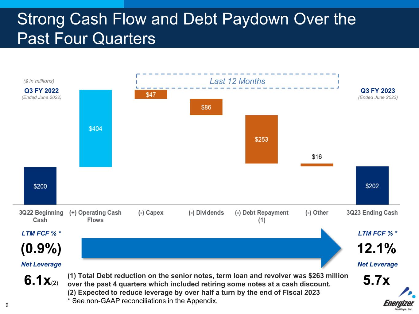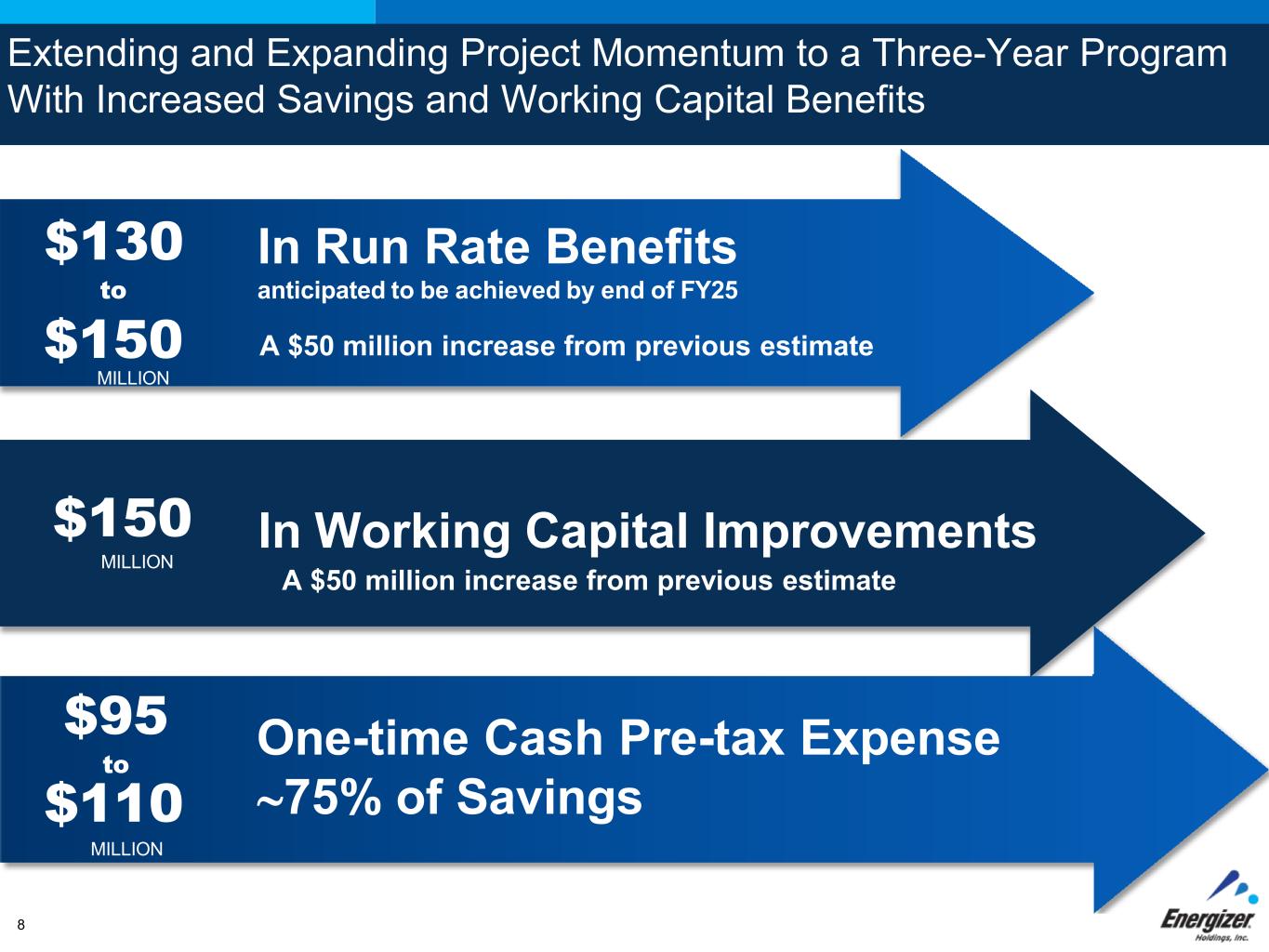 Extending and Expanding Project Momentum to a Three-Year Program With Increased Savings and Working Capital Benefits $130 to $150 MILLION In Run Rate Benefits anticipated to be achieved by end of FY25 A $50 million increase from previous estimate $150 MILLION In Working Capital Improvements One-time Cash Pre-tax Expense ∼75% of Savings $95 to $110 MILLION A $50 million increase from previous estimate 8