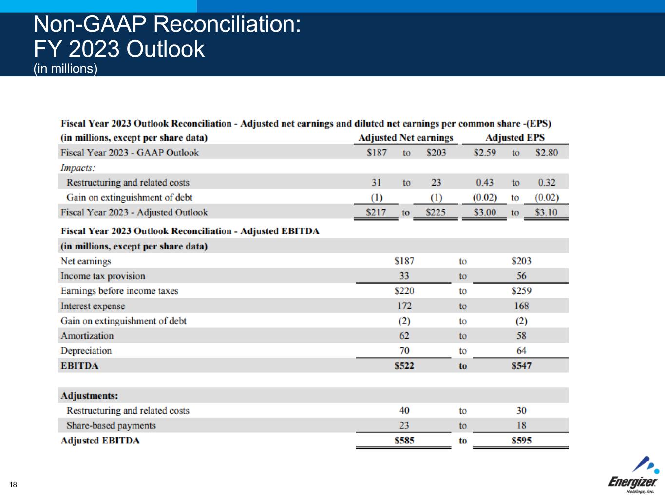 Non-GAAP Reconciliation: FY 2023 Outlook (in millions) 18