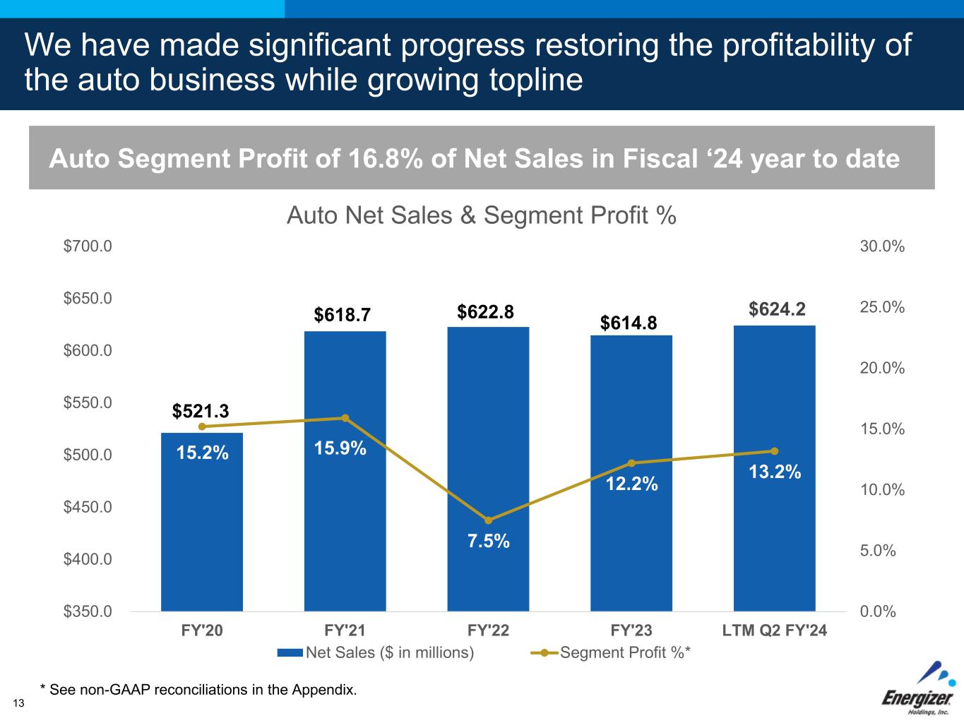 $521.3 $618.7 $622.8 $614.8 $624.2 15.2% 15.9% 7.5% 12.2% 13.2% 0.0% 5.0% 10.0% 15.0% 20.0% 25.0% 30.0% $350.0 $400.0 $450.0 $500.0 $550.0 $600.0 $650.0 $700.0 FY'20 FY'21 FY'22 FY'23 LTM Q2 FY'24 Auto Net Sales & Segment Profit % Net Sales ($ in millions) Segment Profit %* We have made significant progress restoring the profitability of the auto business while growing topline 13 Auto Segment Profit of 16.8% of Net Sales in Fiscal ‘24 year to date * See non-GAAP reconciliations in the Appendix.