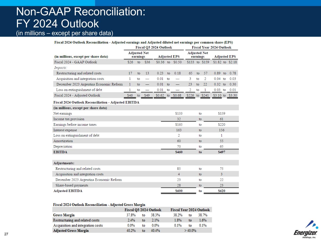 Non-GAAP Reconciliation: FY 2024 Outlook (in millions – except per share data) 27