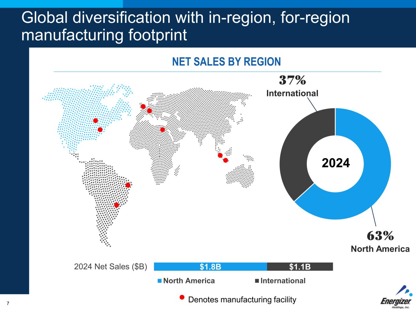 FOR INTERNAL USE ONLY – DO NOT DISTRIBUTE6 GROWTH BY CATEGORY $2.4B $0.6B $2,224 $2,260 $521 $628 FY20 FY24 Batteries & Lights Auto Care +4.8% CAGR +0.4% CAGR 2024 Total Company Net Sales $2.9B Diversified portfolio with proven topline growth across Batteries & Lights and Auto Care +1.3% CAGR 2024 NET SALES BY CATEGORY 22% Auto Care 78% Batteries & Lights