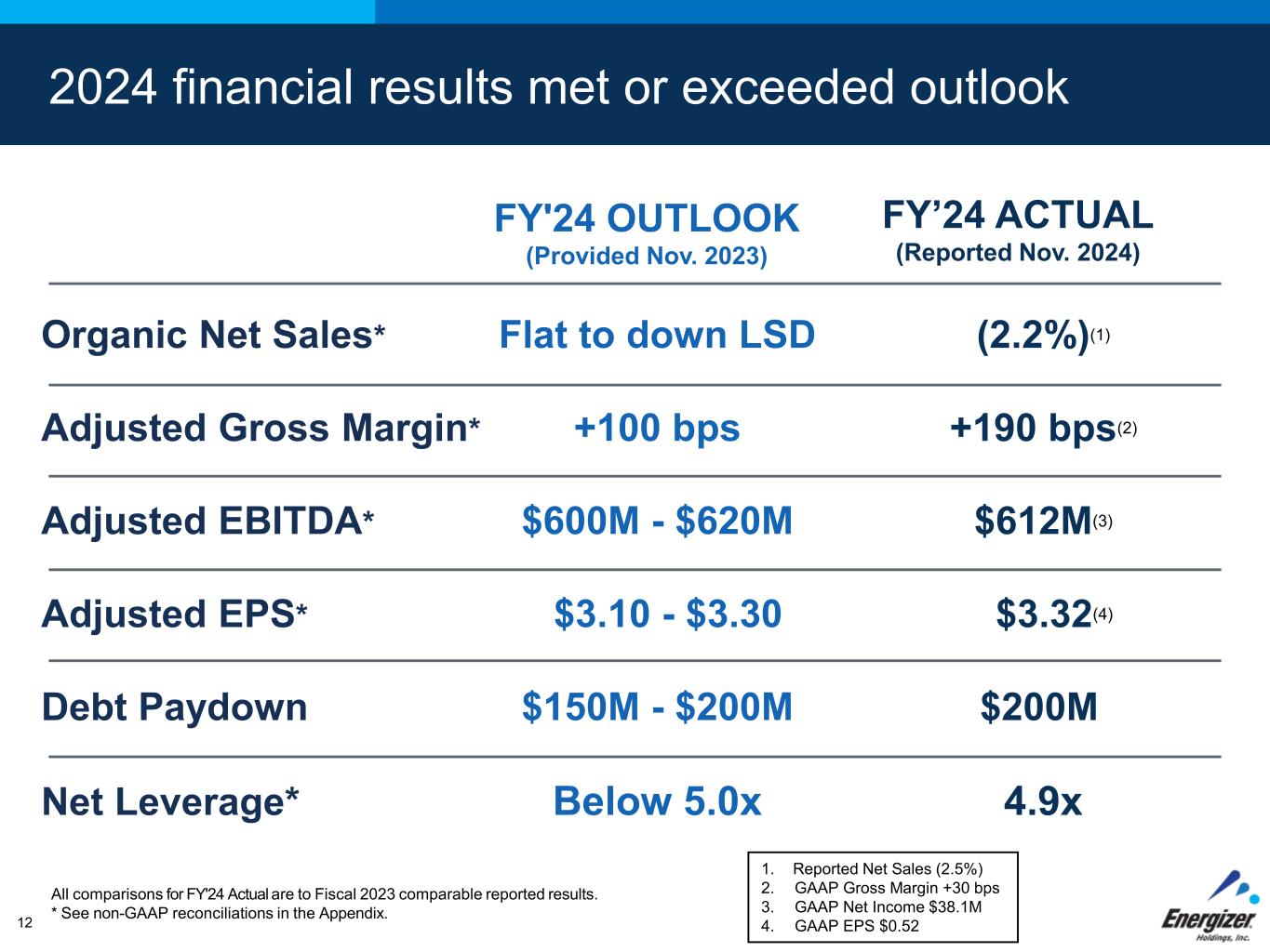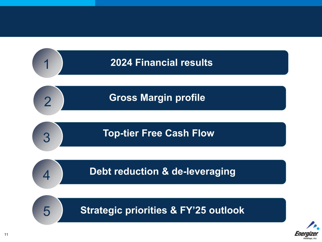 FOR INTERNAL USE ONLY – DO NOT DISTRIBUTE11 2024 Financial results1 Advancement of Strategic priorities 2 Gross Margin profile 3 4 Top-tier Free Cash Flow 5 Debt reduction & de-leveraging Strategic priorities & FY’25 outlook