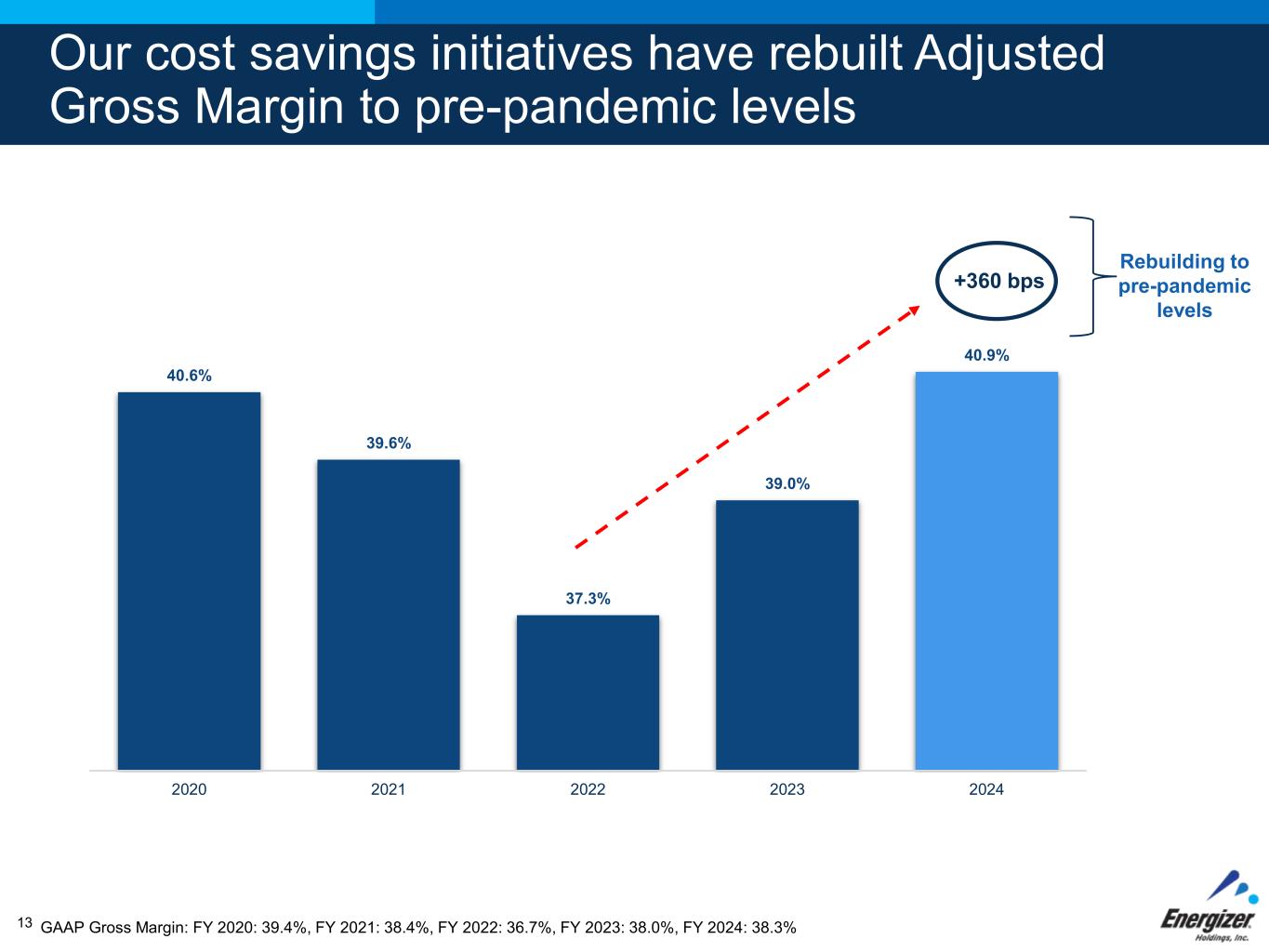 FOR INTERNAL USE ONLY – DO NOT DISTRIBUTE 2024 financial results met or exceeded outlook Organic Net Sales* Adjusted Gross Margin* Adjusted EBITDA* Adjusted EPS* Debt Paydown Net Leverage* Flat to down LSD +100 bps $600M - $620M $3.10 - $3.30 $150M - $200M Below 5.0x (2.2%)(1) +190 bps(2) $612M(3) $3.32(4) $200M 4.9x FY'24 OUTLOOK (Provided Nov. 2023) FY’24 ACTUAL (Reported Nov. 2024) 12 All comparisons for FY'24 Actual are to Fiscal 2023 comparable reported results. * See non-GAAP reconciliations in the Appendix. 1. Reported Net Sales (2.5%) 2. GAAP Gross Margin +30 bps 3. GAAP Net Income $38.1M 4. GAAP EPS $0.52