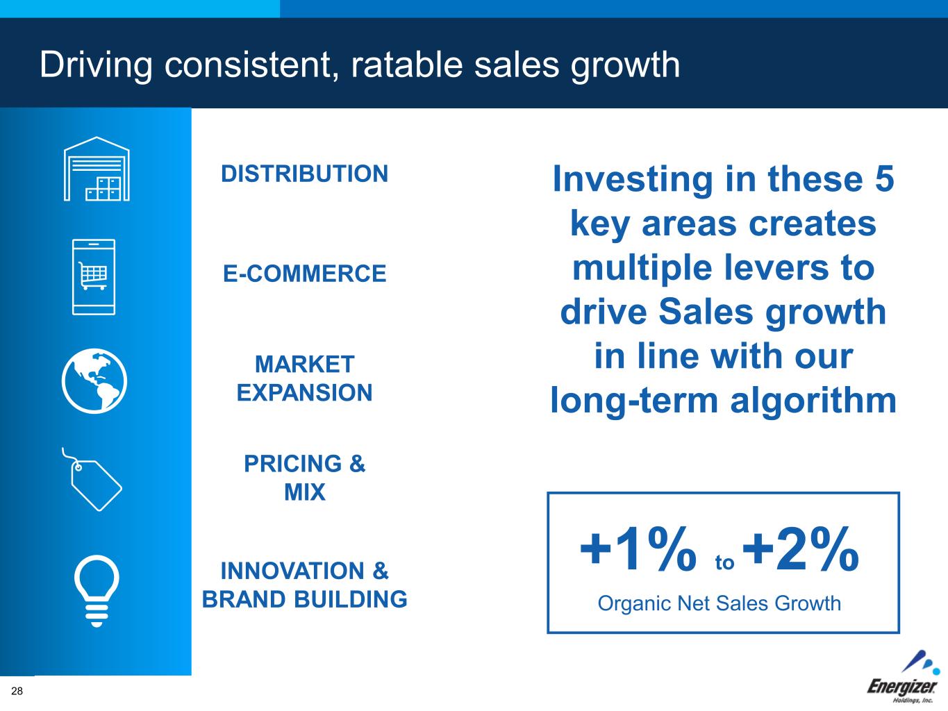 FOR INTERNAL USE ONLY – DO NOT DISTRIBUTE Driving consistent, ratable sales growth PRICING & MIX MARKET EXPANSION E-COMMERCE DISTRIBUTION 28 INNOVATION & BRAND BUILDING Investing in these 5 key areas creates multiple levers to drive Sales growth in line with our long-term algorithm levers to drive Sales growth in line with our long-term algorithm +1% to +2% Organic Net Sales Growth