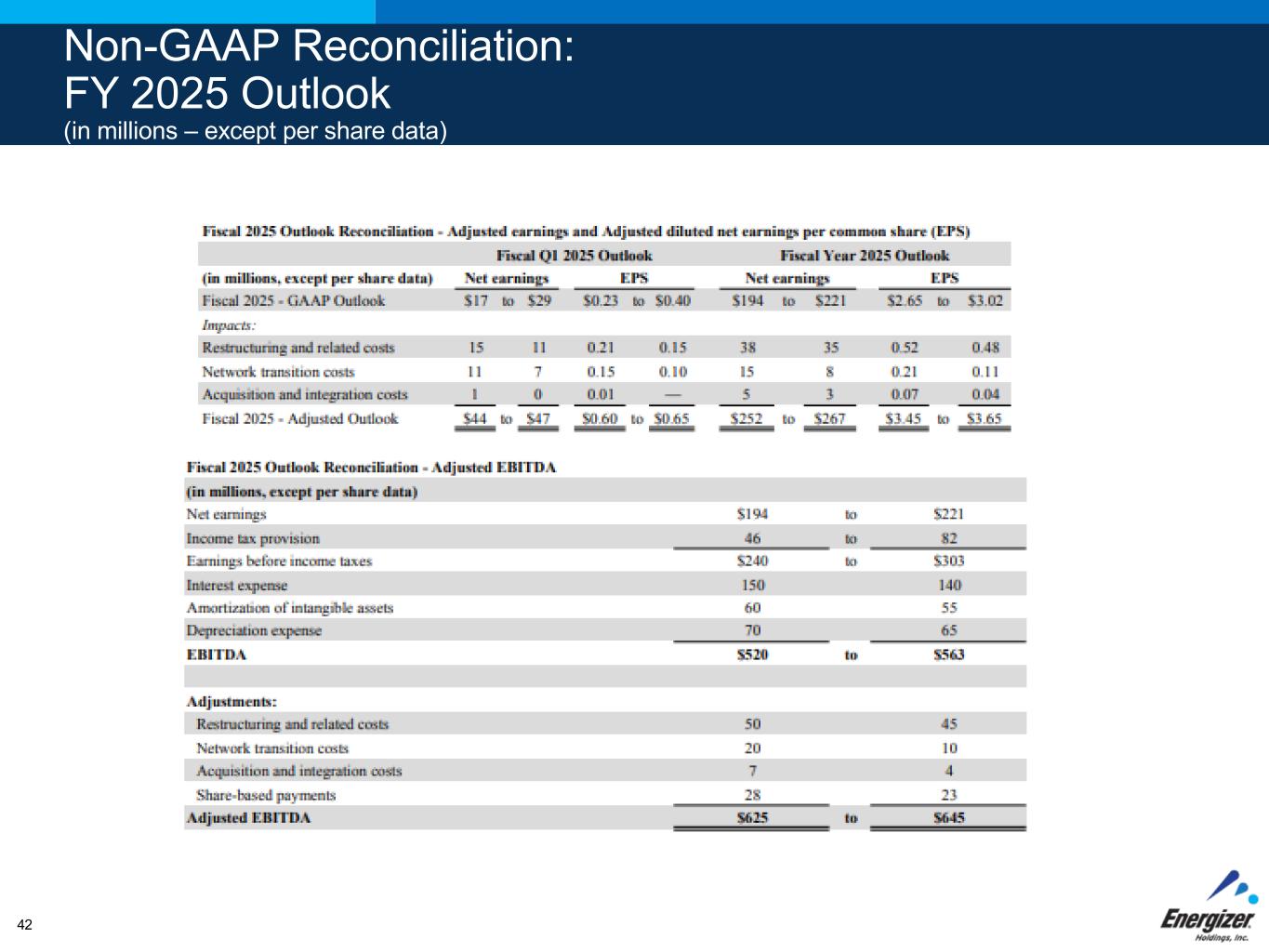 Non-GAAP Reconciliation: FY 2025 Outlook (in millions – except per share data) 42