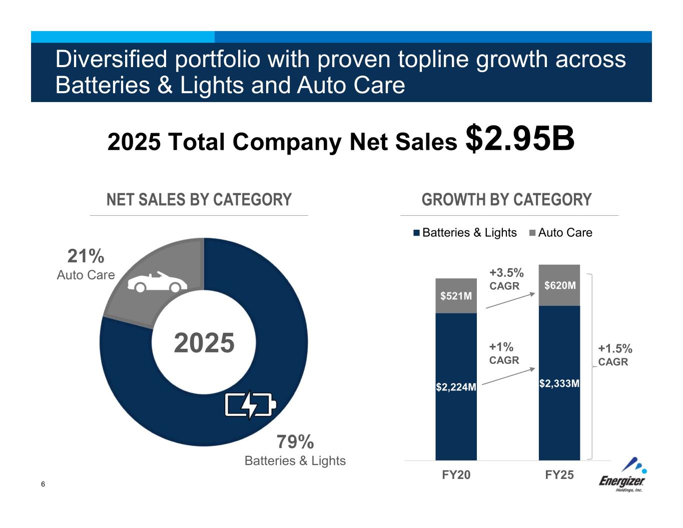 FOR INTERNAL USE ONLY – DO NOT DISTRIBUTE6 GROWTH BY CATEGORY $2.4B $0.6B$2,224M $2,333M $521M $620M FY20 FY25 Batteries & Lights Auto Care +3.5% CAGR +1% CAGR 2025 Total Company Net Sales $2.95B Diversified portfolio with proven topline growth across Batteries & Lights and Auto Care +1.5% CAGR NET SALES BY CATEGORY 79% Batteries & Lights 21% Auto Care 2025