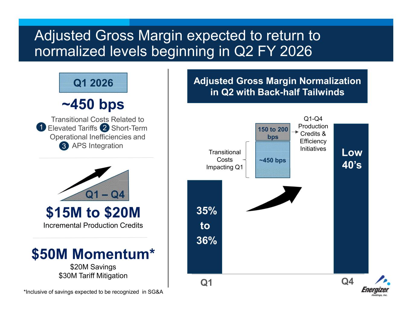 FOR INTERNAL USE ONLY – DO NOT DISTRIBUTE Q1 Q4 Adjusted Gross Margin expected to return to normalized levels beginning in Q2 FY 2026 ~450 bps 35% to 36% Low 40’s Q1-Q4 Production Credits & Efficiency Initiatives ~450 bps Transitional Costs Related to Elevated Tariffs Short-Term Operational Inefficiencies and APS Integration $15M to $20M Incremental Production Credits $50M Momentum* $20M Savings $30M Tariff Mitigation Adjusted Gross Margin Normalization in Q2 with Back-half Tailwinds Q1 2026 1 2 3 Q1 – Q4 *Inclusive of savings expected to be recognized in SG&A 150 to 200 bps Transitional Costs Impacting Q1