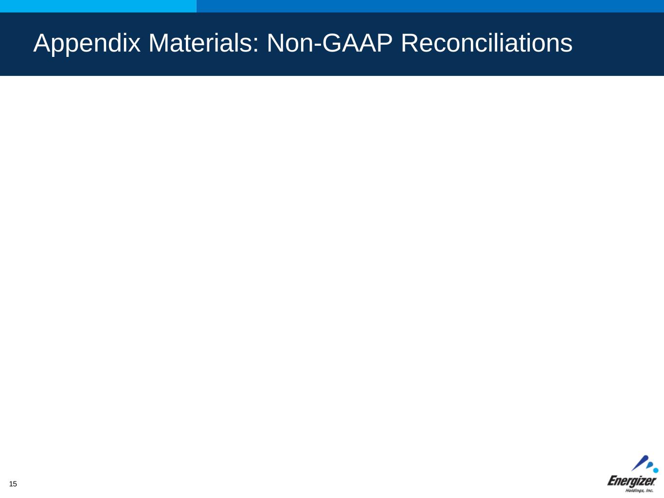 Providing Second Quarter Outlook Organic Net Sales (4%) to (5%) Adjusted Gross Margin* Sequential improvement of 300 basis points Adjusted EPS* $0.40 - $0.50 Q2’26 OUTLOOK All comparisons for Fiscal 2026 actual results are to Fiscal 2025 comparable reported results. * See non-GAAP reconciliations in the Appendix. Outlook does not contemplate any impact from the recent winter storm activity 14