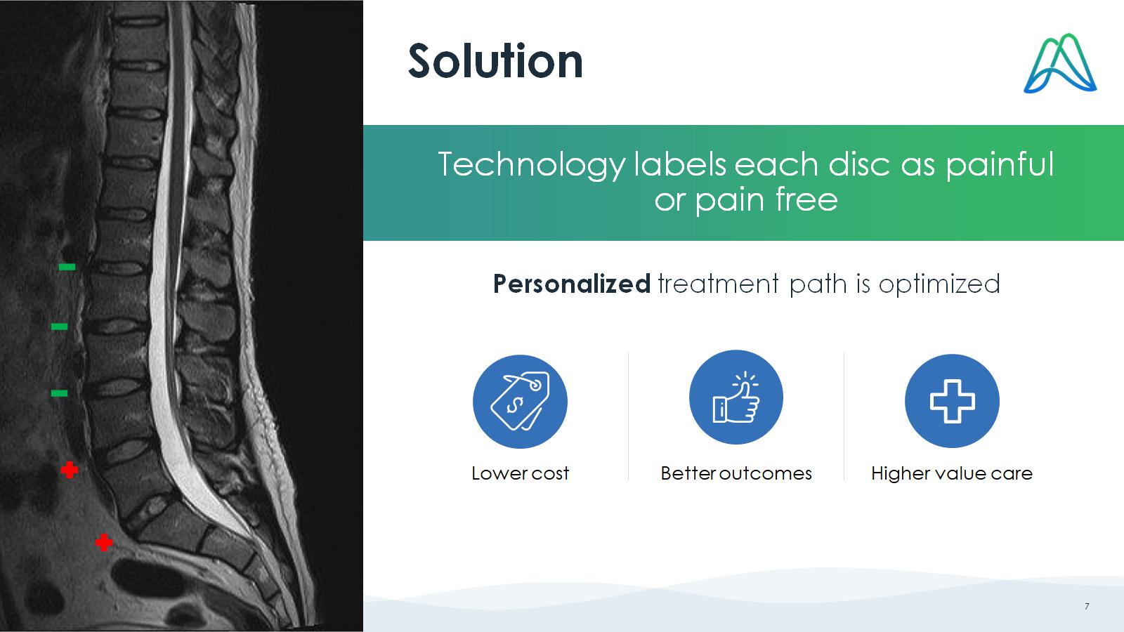 Aclarion 2025 7 Solution Technology labels each disc as painful or pain free Personalized treatment path is optimized Lower cost Better outcomes Higher value care