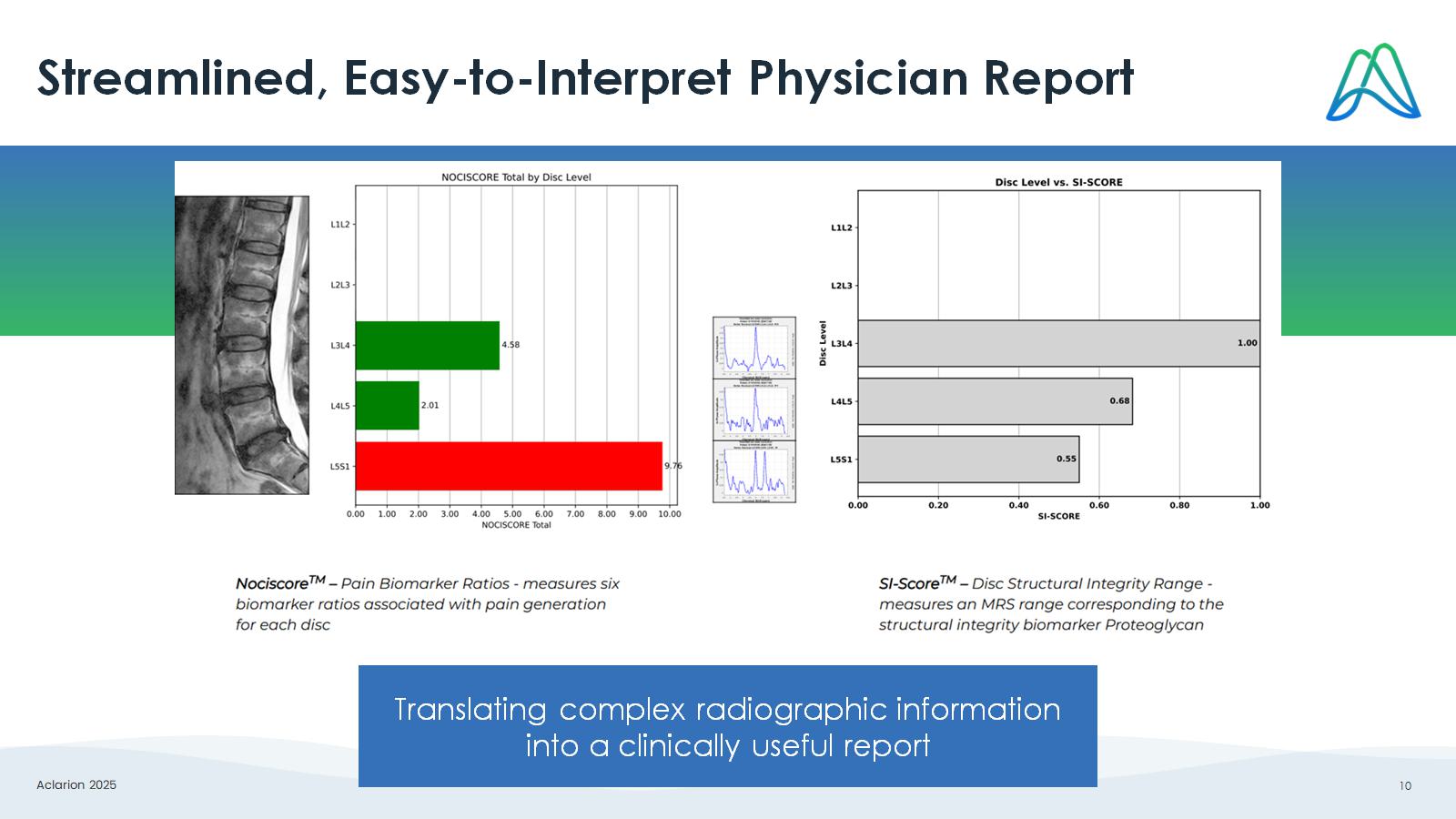 Aclarion 2025 10 Streamlined, Easy - to - Interpret Physician Report Translating complex radiographic information into a clinically useful report